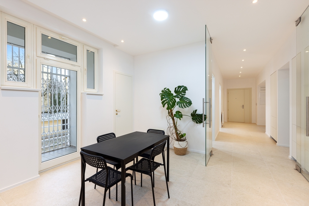Byt nabízí mnoho možností využití od klasického bydlení rodiny, páru i jednotlivce přes využití sídla firmy, kanceláře, showroom.