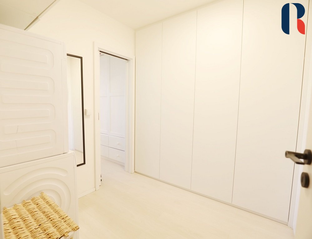 Byt je moderní, funkční, nábytek na míru a vestavěné skříně zajišťují dostatek úložného prostoru a tím maximální využití celého prostoru. Ve všech pokojích jsou předokenní žaluzie a elektro termoizolační rolety, které pomáhají snižovat přehřívání místností v létě, omezovat tepelné ztráty v zimě a digitální termostat k regulaci vytápění místností umožňující i vzdálené ovládání. Je nainstalováno centrální zhasínání světel, možnost změny barev a teploty stropního světla. Na podlaze je kvalitní bezpečná vinylová podlaha ( bio bez ftalátů), v koupelnách a wc dlažba, bezpečnostní protipožární dveře, vnitřní videotelefon s barevným displejem pro ovládání zámku vchodových dveří do domu vč. výtahu.