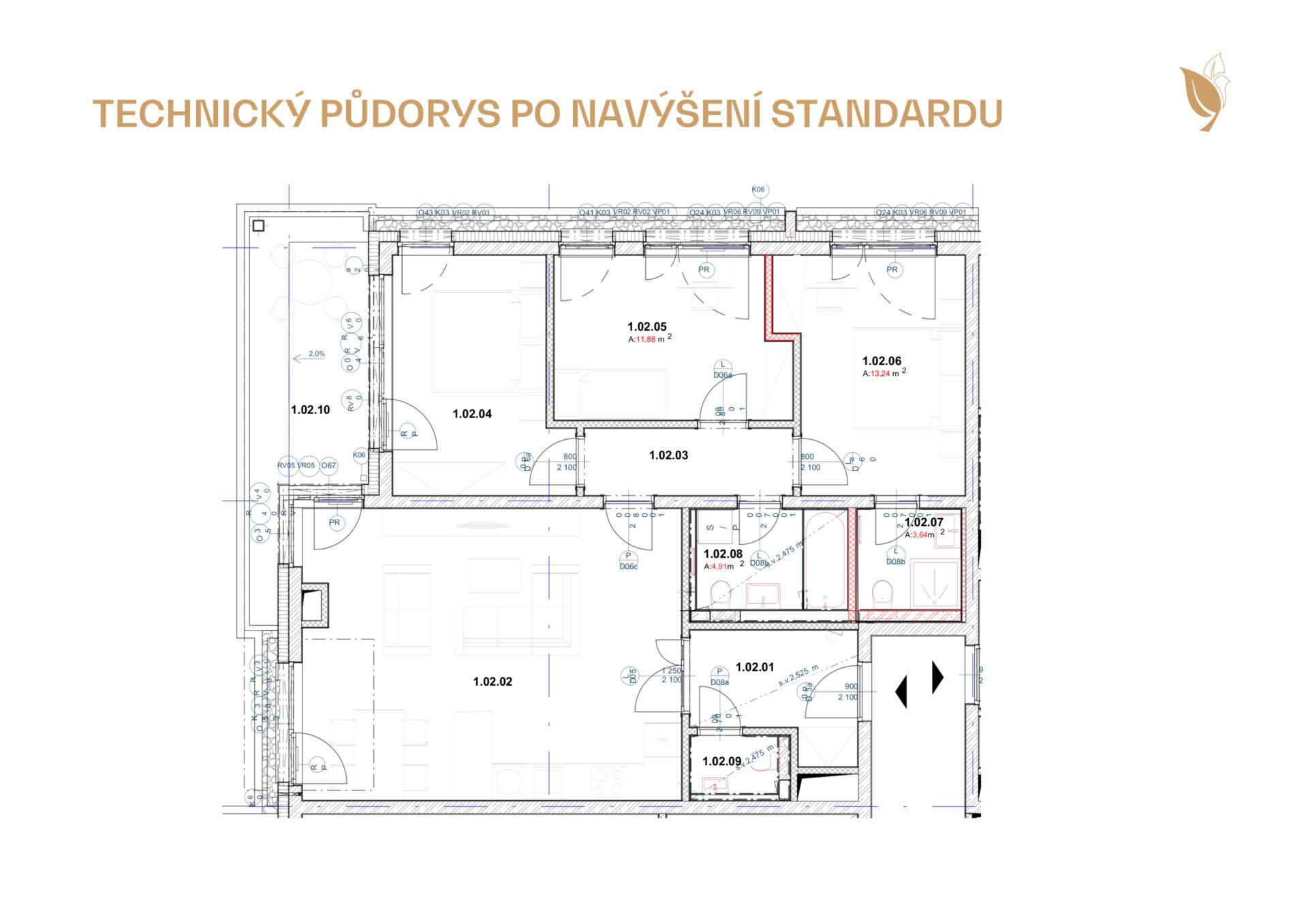 - prémiový standard provedení: velkoformátové obklady a dlažba Savoia Italia, designová sanita Laufen (již v ceně bytu)