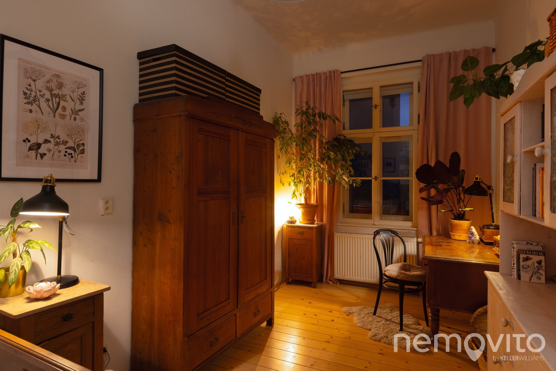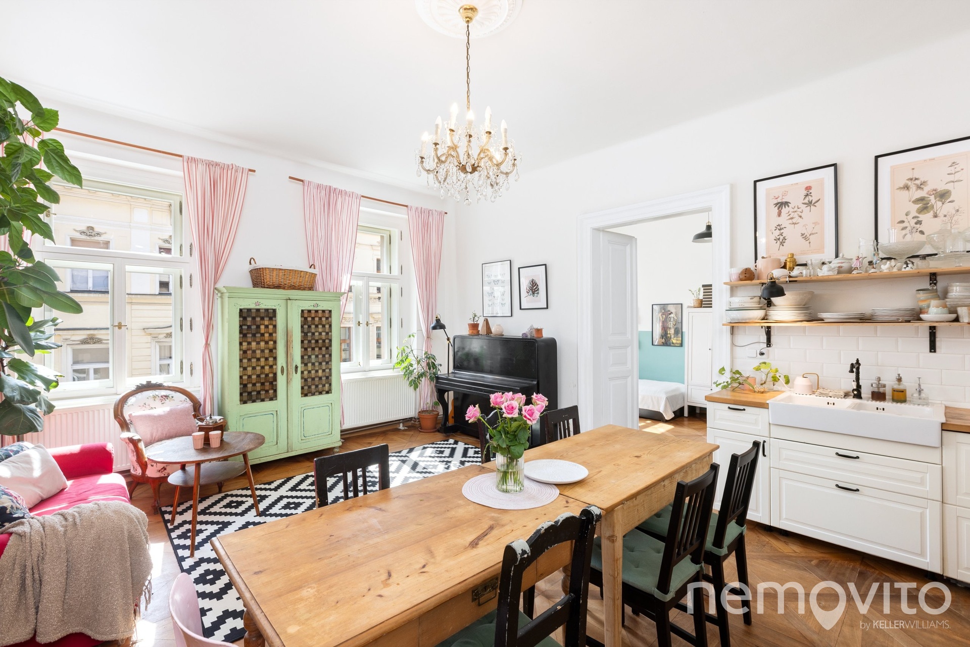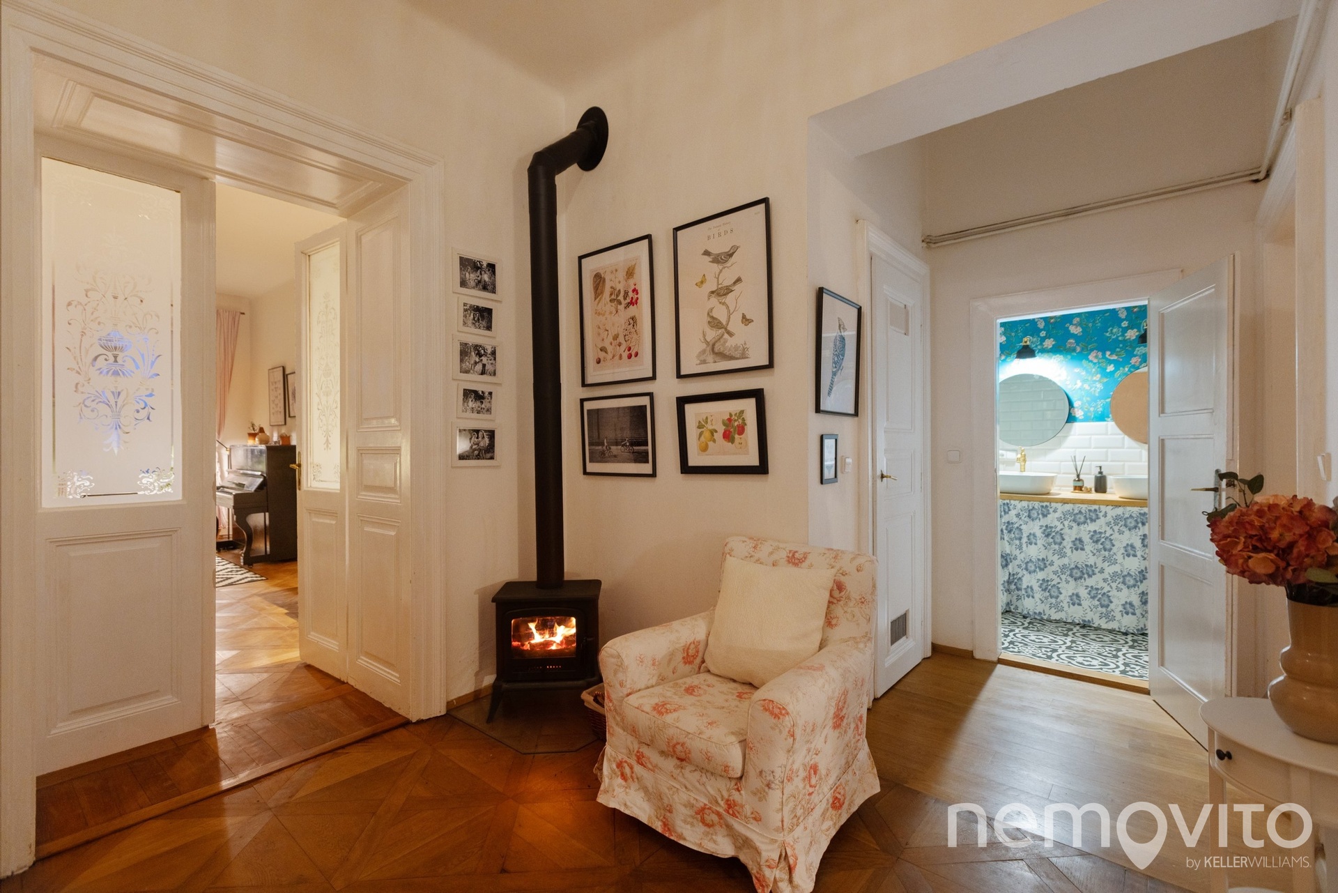 Byt 4+kk, ve kterém hřeje skutečné teplo, a kde je všechno opravdové. Řada originálních prvků byla v rámci citlivé rekonstrukce (2021) zachována a nesou nejen svůj historický odkaz, ale zejména utváří naprosto neopakovatelnou atmosféru starých časů. Zapomeňme dobu plastovou, tady čeká dřevo a kov.