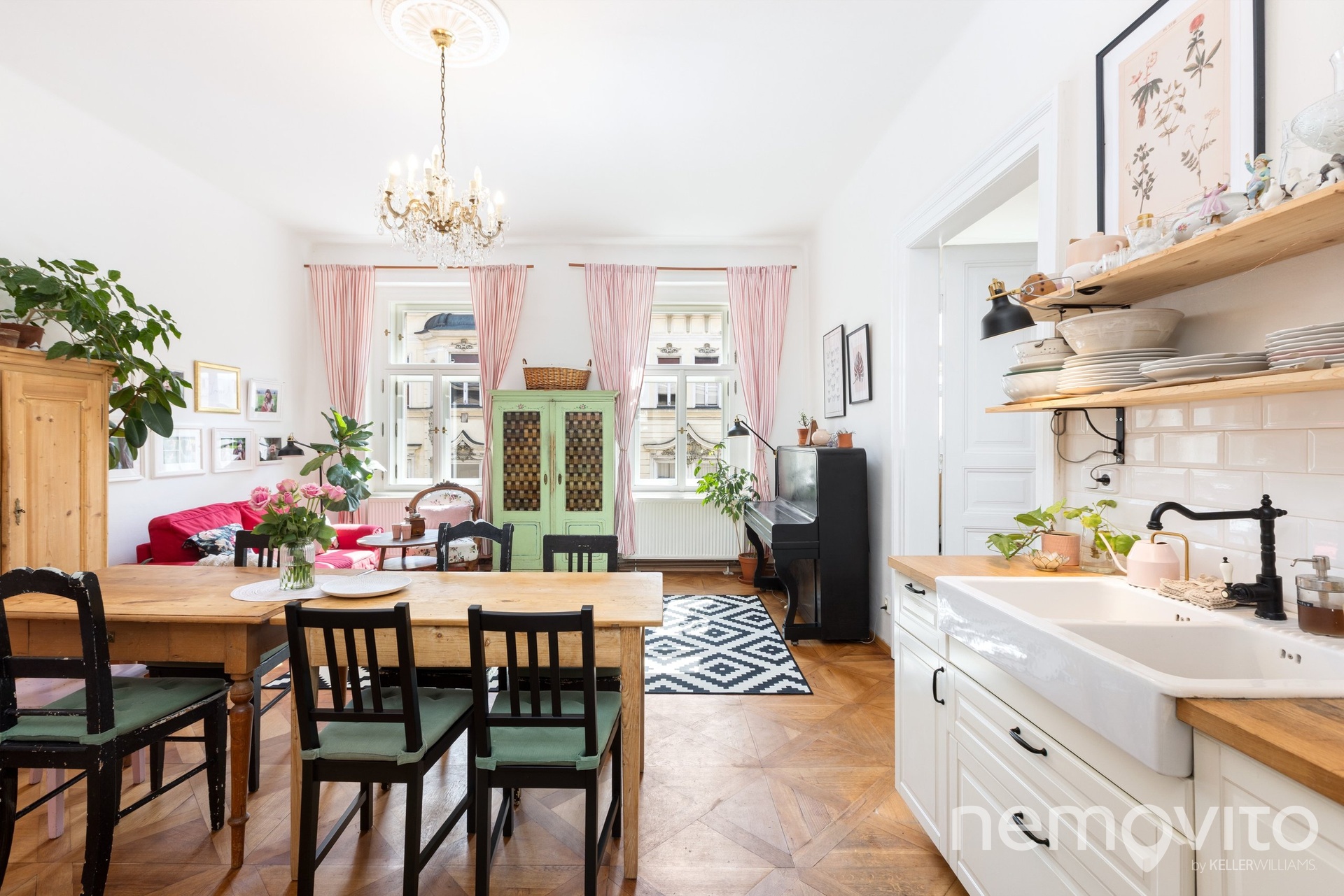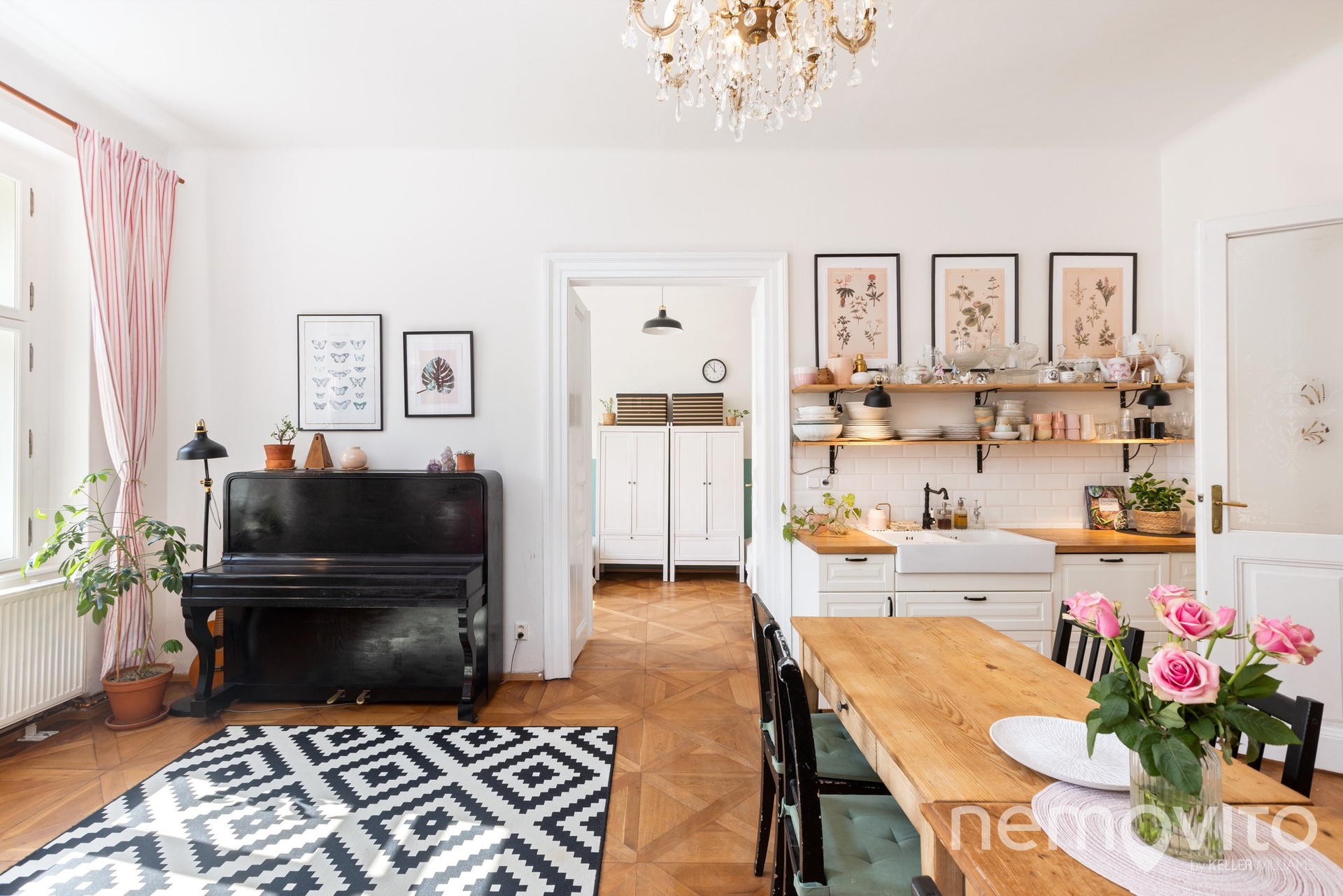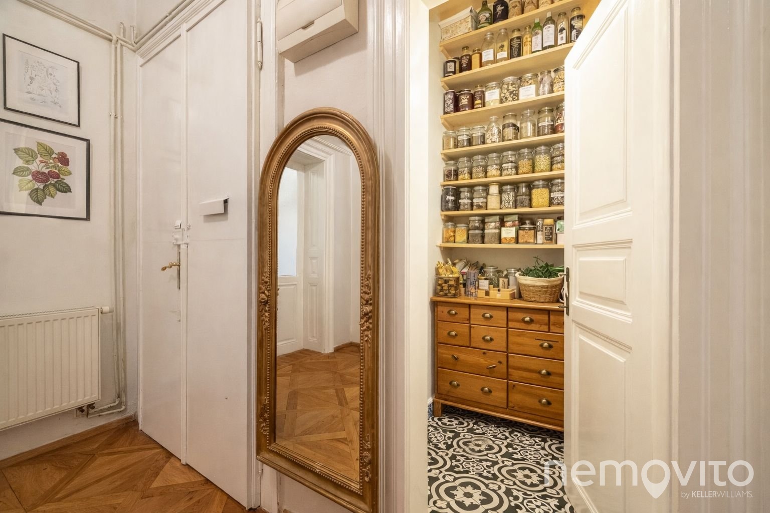 Byt 4+kk, ve kterém hřeje skutečné teplo, a kde je všechno opravdové. Řada originálních prvků byla v rámci citlivé rekonstrukce (2021) zachována a nesou nejen svůj historický odkaz, ale zejména utváří naprosto neopakovatelnou atmosféru starých časů. Zapomeňme dobu plastovou, tady čeká dřevo a kov.