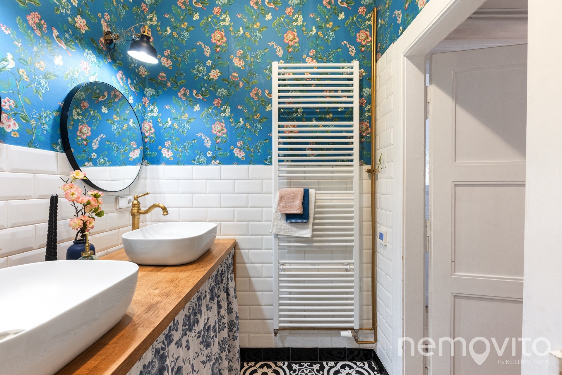 Koupelna, ve které se kombinuje hravý motiv květin s nenápadným obkladem, je vybavena vanou. Na samostatné toaletě nechybí umývátko. Adekvátní audienci poskytuje vstupní hala s litinovými kamny, které jsou plně funkční, a jednoduše senzační. Otevření vstupních dveří, ve kterých vás uvítá teplo ohně, je skutečně nevídaným zážitkem.