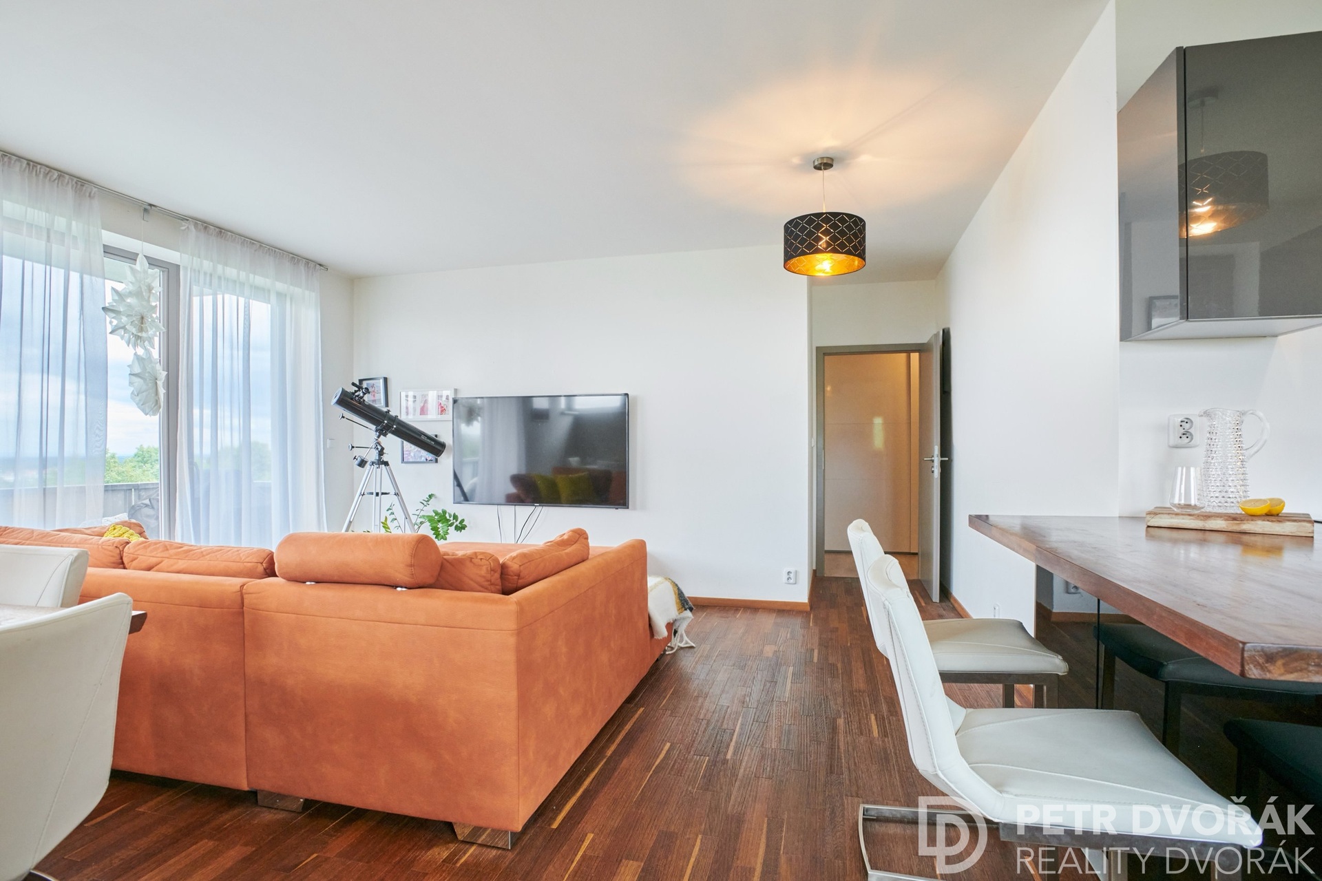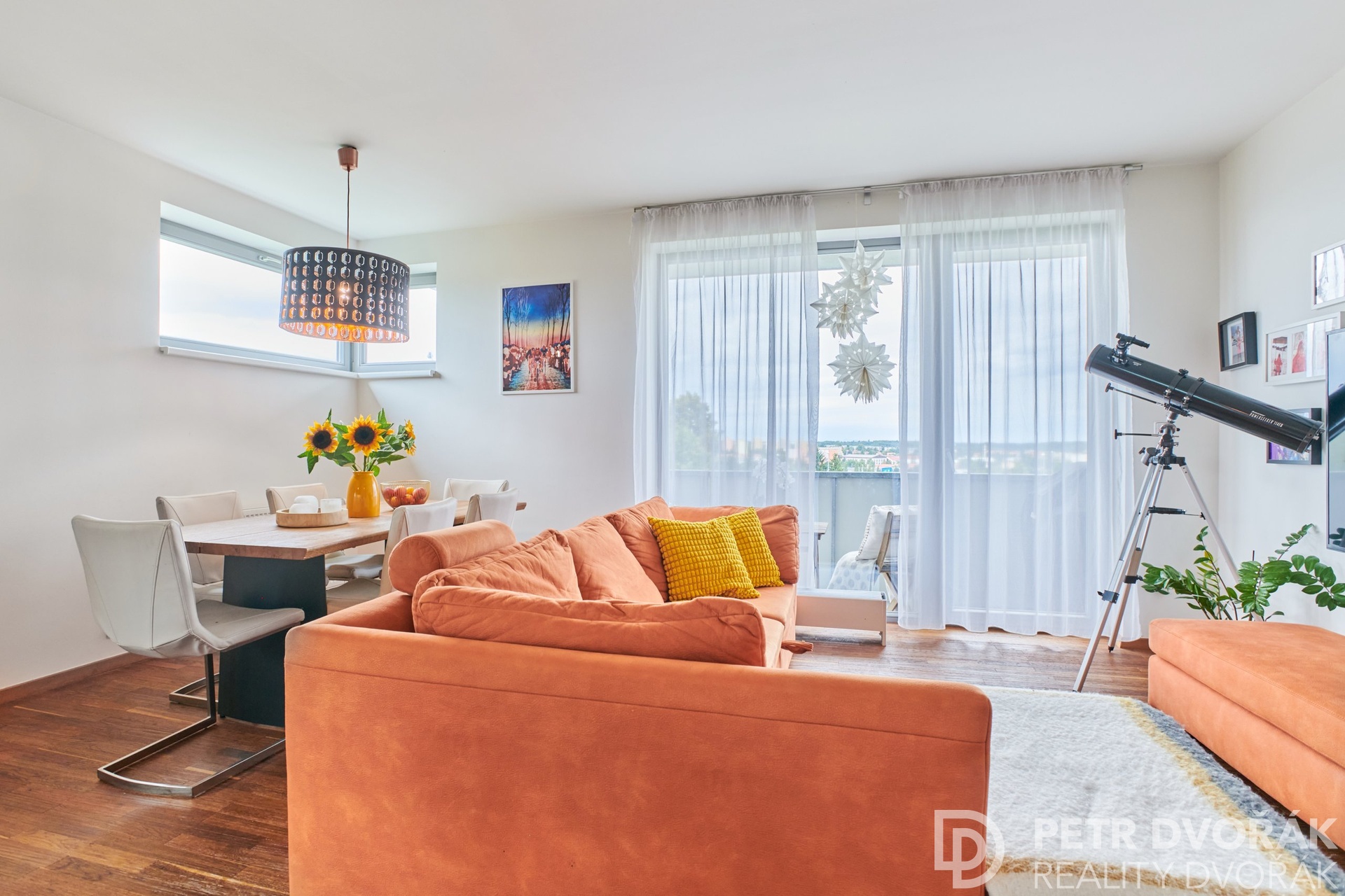 Prostorný byt o podlahové ploše 118,7 m², doplněný o dva balkóny (6,3 m² a 8,9 m², nezapočítané v uvedené ploše bytu) a dvě garážová stání vedle sebe v podzemí domu, se nachází ve 2. podlaží moderní rezidence s výtahem a bezbariérovým přístupem. Byt nabízí jedinečný panoramatický výhled na Letohrádek Hvězda, České středohoří a za jasného počasí až na Ještěd.