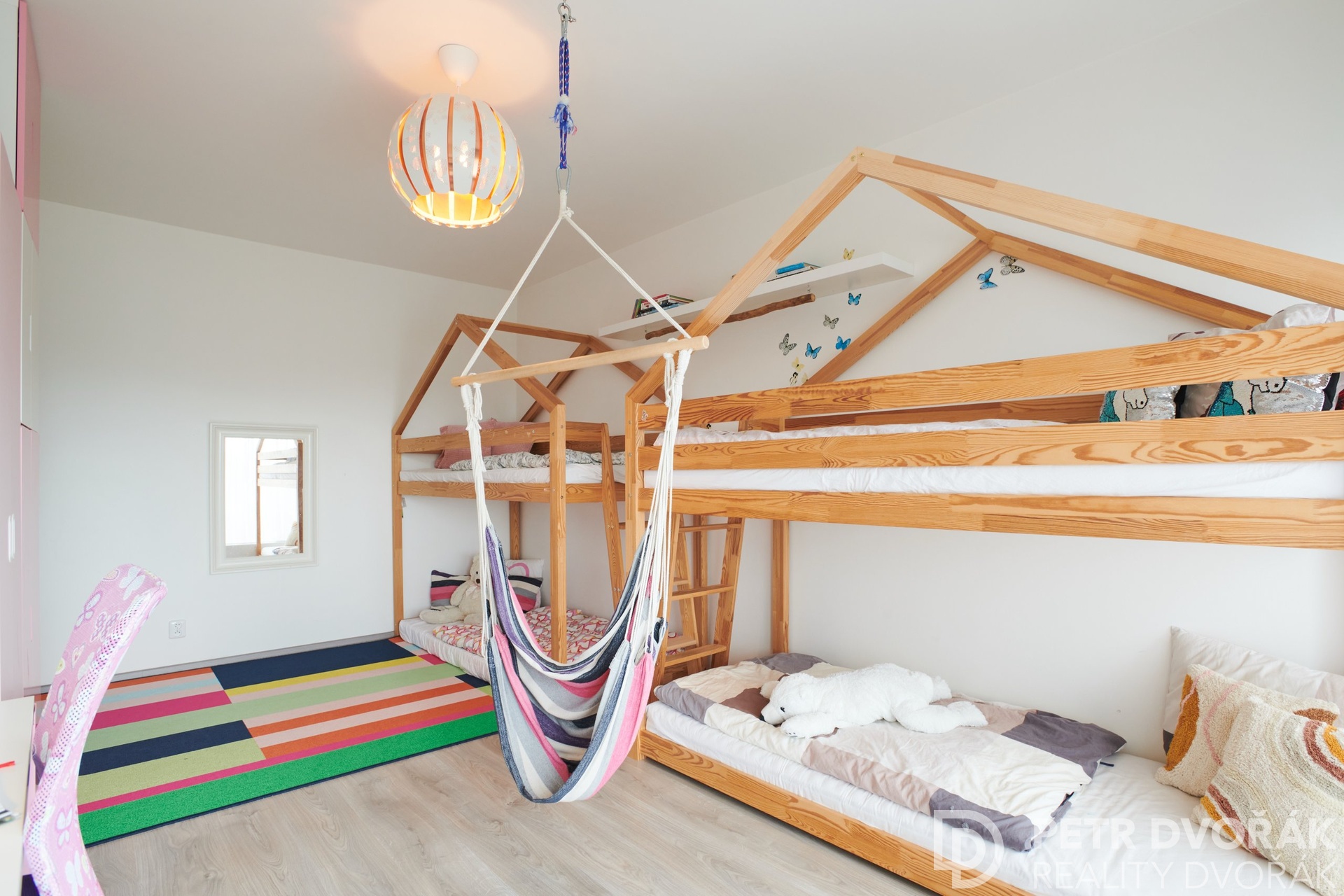 Dispozice je ideální pro rodinu – dětské pokoje jsou oddělené od ložnice i obývací části prostornou chodbou a každá část má svou vlastní koupelnu. Díky tomu má každý člen domácnosti dostatek soukromí.