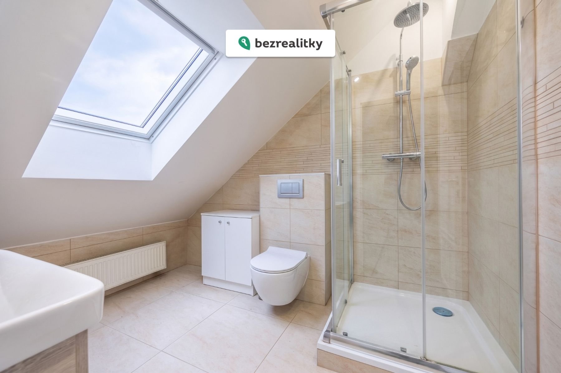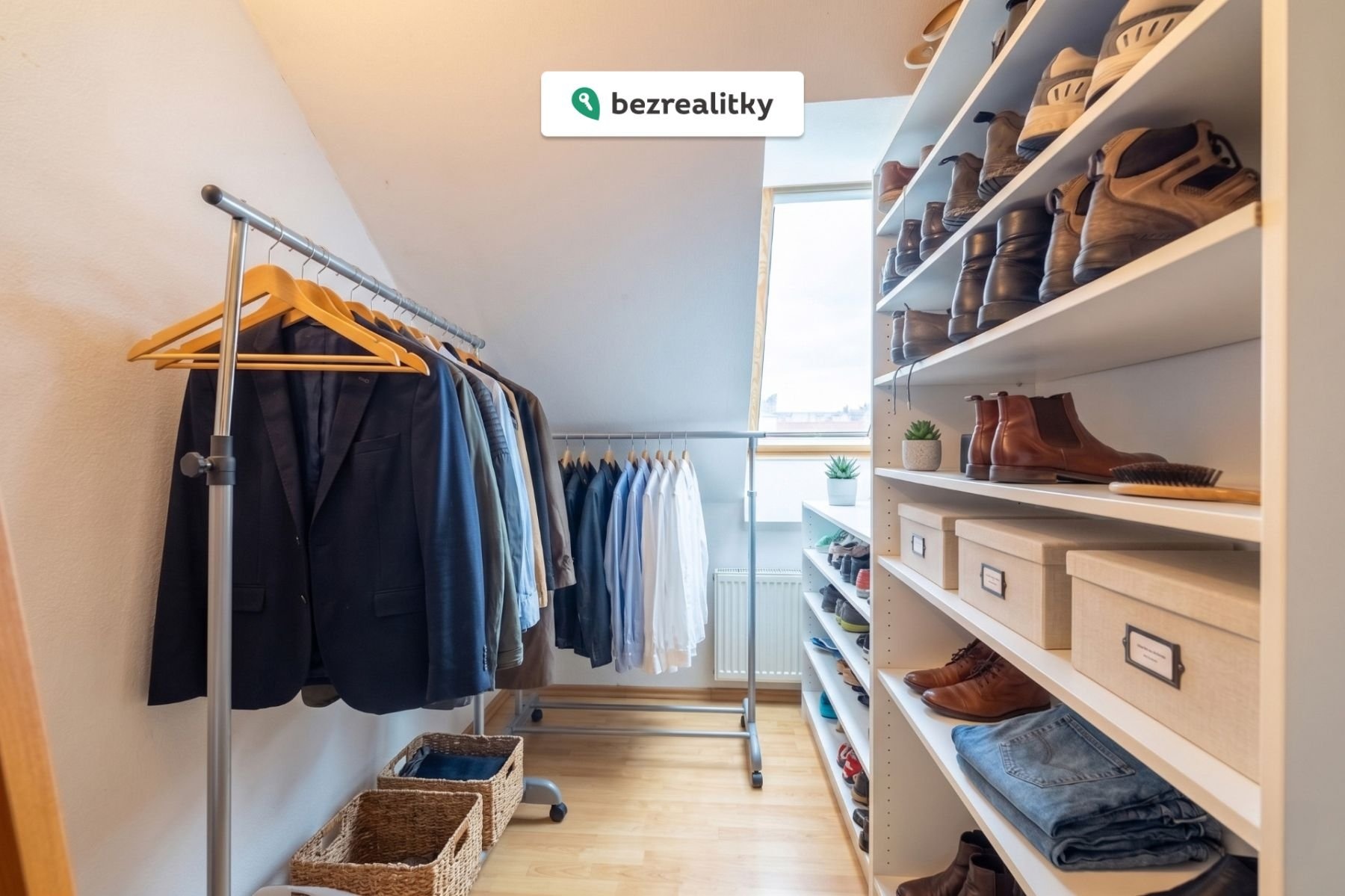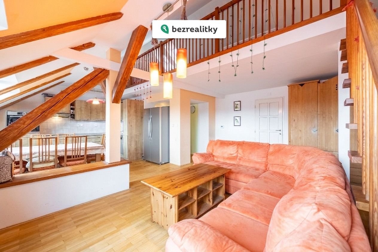 Dominantou bytu je velkorysý otevřený obývací prostor s kuchyní, který působí díky podkrovní architektuře mimořádně světlým a vzdušným dojmem. Otevřený strop, přirozené světlo a plynulé propojení jednotlivých částí vytvářejí ideální místo pro rodinný život i reprezentativní setkávání s přáteli.