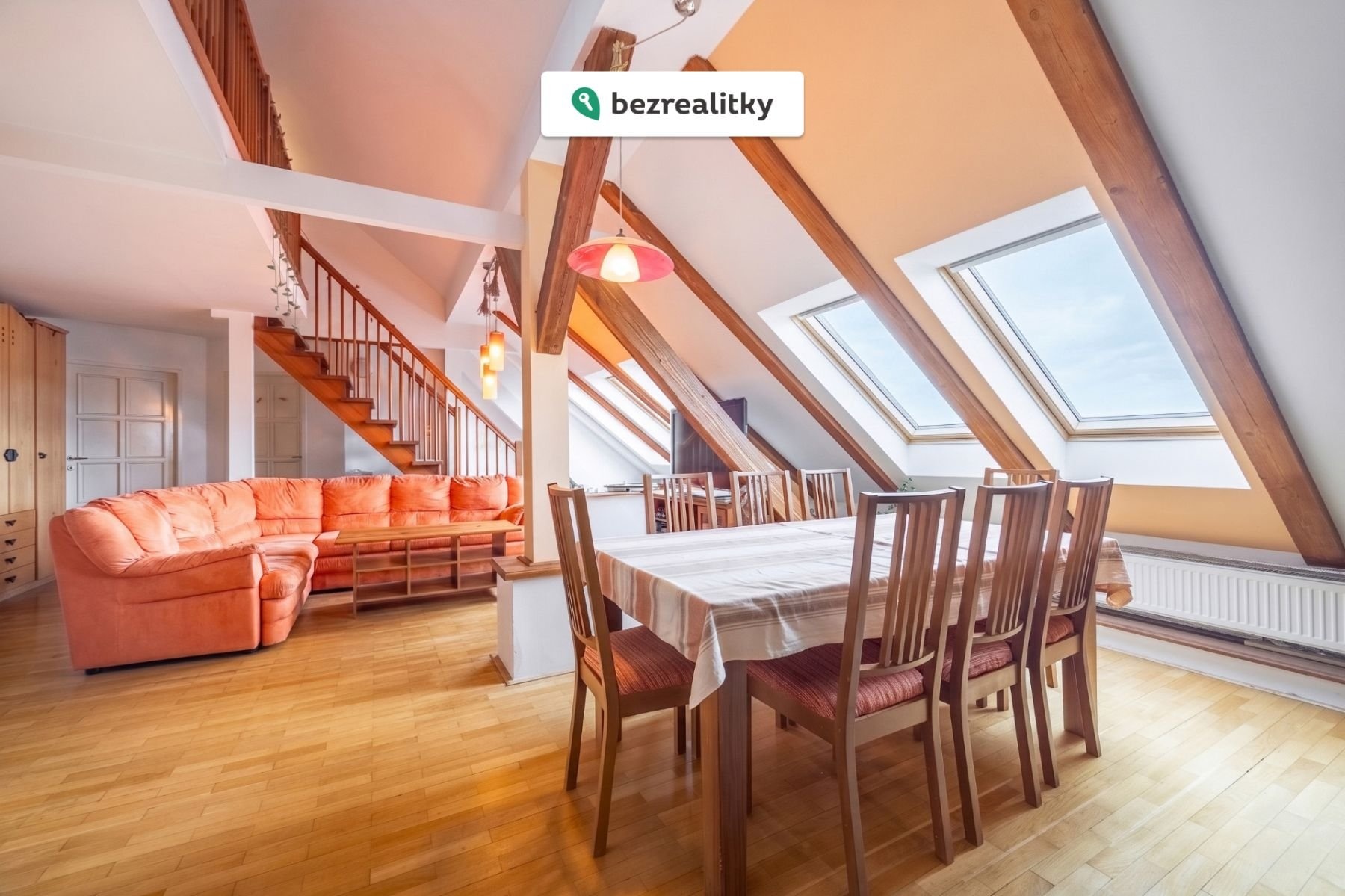 Nabízíme jedinečný podkrovní byt v osobním vlastnictví o dispozici 4+kk a užitné ploše 175 m², situovaný v 7. nadzemním podlaží udržovaného domu s výtahem v ulici Amurská, Praha – Vršovice.