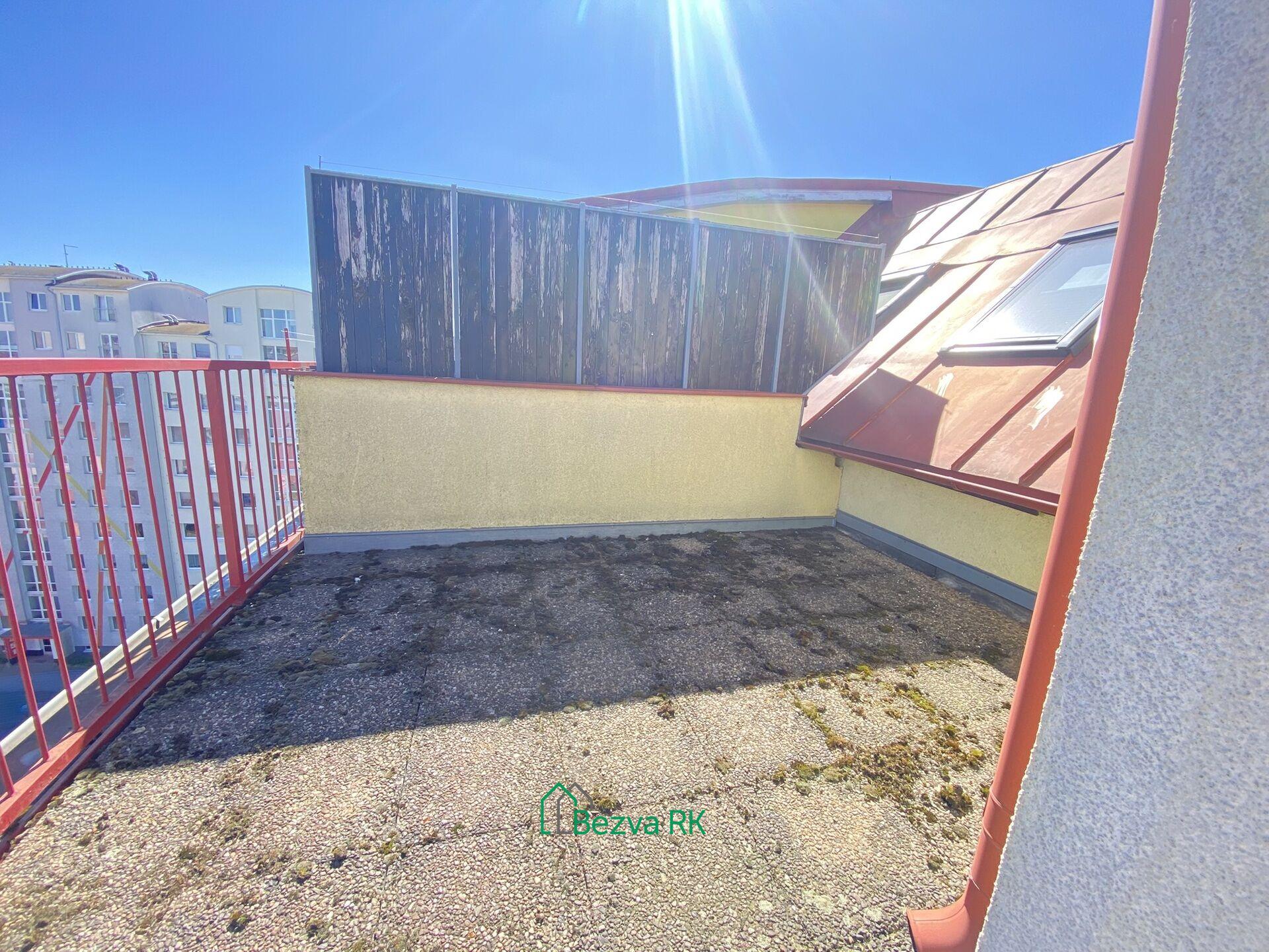 • Skutečným klenotem je terasa o rozloze 15 m². Místo, pro letní posezení s přáteli, pěstování rostlin, dětský bazén a nebo prostě jen pro pocit klidu vysoko nad shonem města.