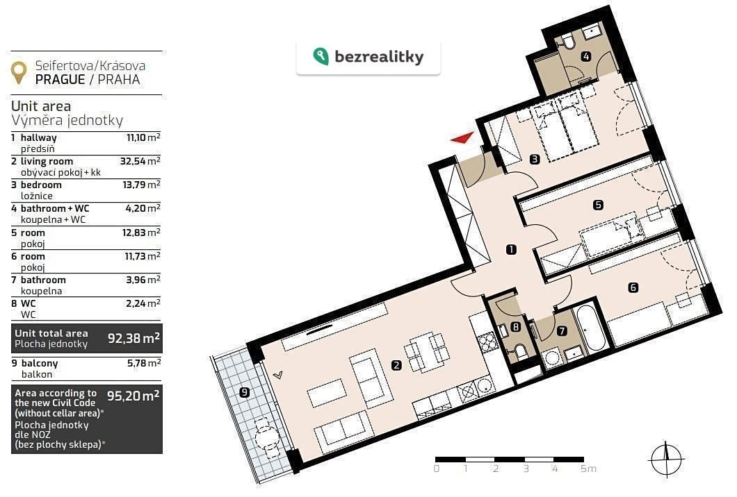 Nabízím k prodeji prostorný a moderně zařízený byt 4+kk v osobním vlastnictví, který se nachází ve cihlové novostavbě. Byt o užitné ploše 96 m² se nachází ve třetím patře ze čtyř a je orientován tak, aby splňoval všechny nároky moderního bydlení. Díky kvalitnímu provedení a energetické náročnosti budovy označené štítkem A se můžete těšit na nízké provozní náklady a příjemné prostředí.
