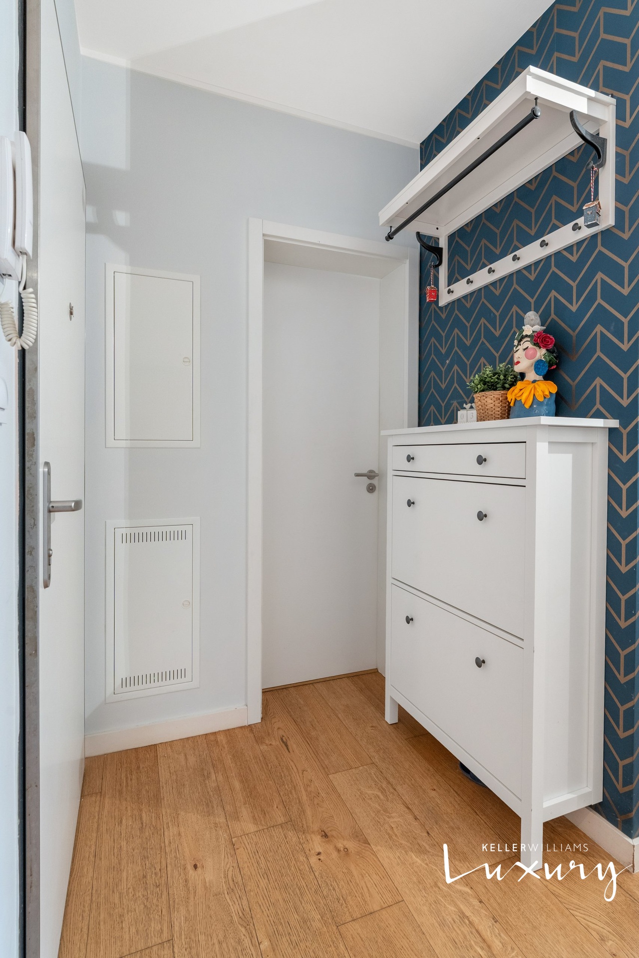 V bytě je cítit rukopis bytové designerky, která v dětském pokoji vytvořila iluzi nočního temného nebe rozsvíceného květinovým vzorem nebo nechala opticky zmizet vestavěnou zrcadlovou skříň v chodbě. Předsíň a pracovnu sjednocuje příbuzný motiv tapet a v ložnici ji navíc doplňuje autorská malba.