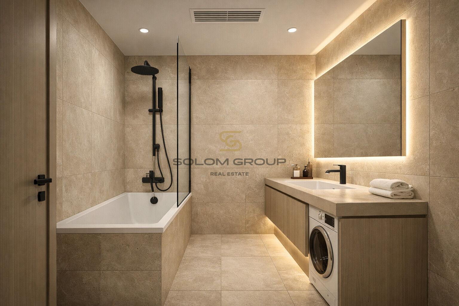 Byt Vám bude předán hotový vč. zařízené koupelny (umyvadlo, vana a sprchový kout, topný žebřík a závěsné WC) dále interiérové dveře, plastová okna, nové rozvody vody, elektřiny a odpadů, příprava pro kuchyňskou linku, protipožární vchodové dveře, obklady a dlažba.