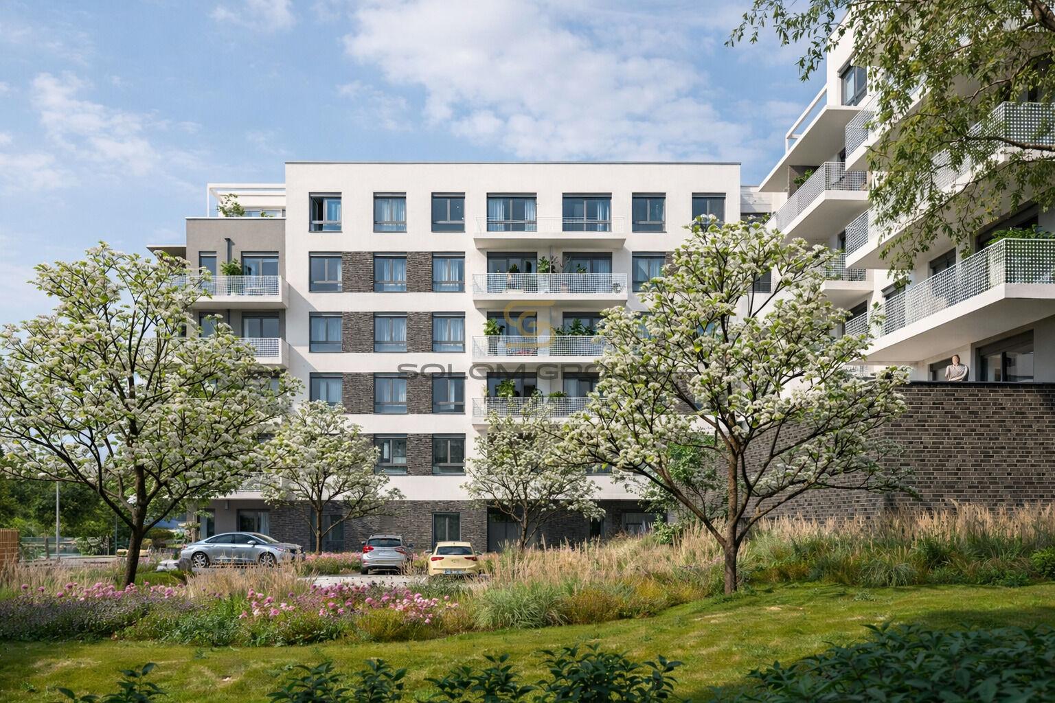 Prodej nového nadstandardního bytu 4+kk o výměře 105,3 m² s terasami 8,6 m² a 15,6 m², který se nachází v 5. NP cihlové novostavby v Rezidenci Britská čtvrť, Praha 12 – Stodůlky.