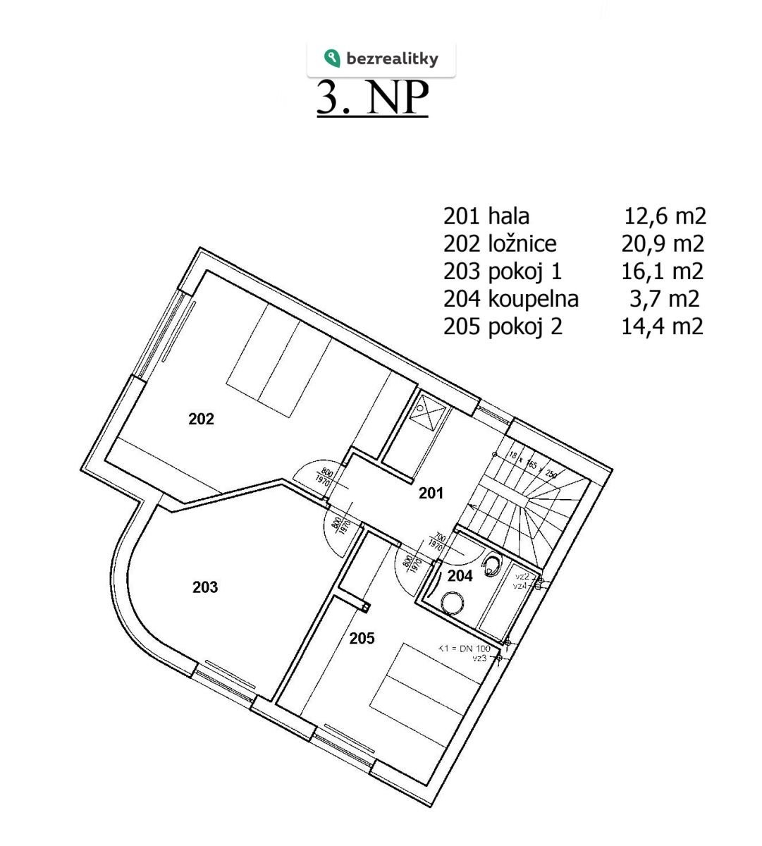 Ve 3. NP jsou situovány tři samostatné pokoje a koupelna.