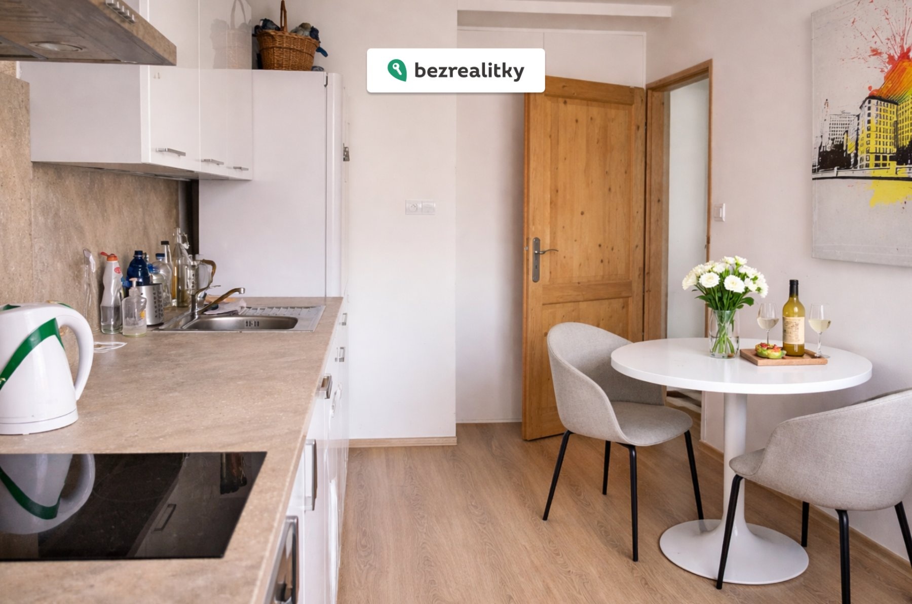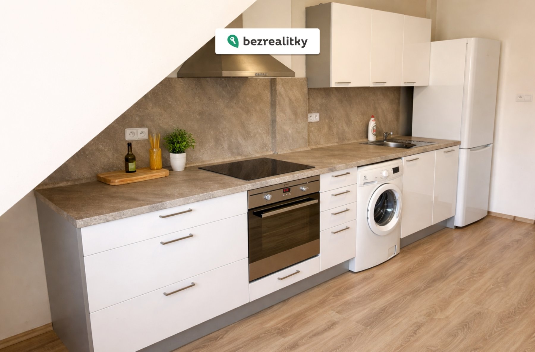 Kompletně zrekonstruovaný v roce 2017 — nová moderní kuchyňská linka s vestavnými spotřebiči, troubou, varnou deskou a pračkou. Kuchyň a pokoj, vlastní koupelna s WC a sprchovým koutem, nové laminátové podlahy a kompletní nové rozvody.