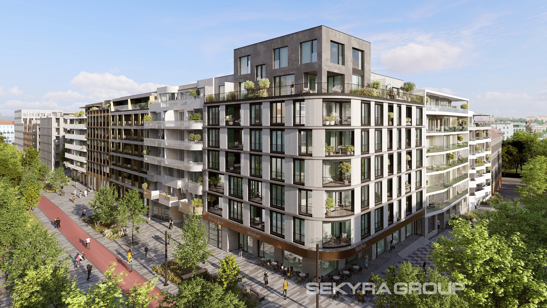 SM8 navazuje na již realizované rezidenční bloky SM1/2 a SM3 a zahrnuje celkem 12 bytových domů. Je součástí projektu Smíchov City, jehož záměrem je nabídnout obyvatelům moderní bydlení s vysokým standardem provedení, vybavené špičkovými technologiemi. Nespornou výhodou je navíc umístění v centru města. Exkluzivní byty doplní v přízemí objektů funkční městský parter s obchody a službami. V ulicích budou vysázeny stromy, které zpříjemní klima a v horkých dnech poskytnou chladivý stín. Blok sousedí s třídou Madeleine Albrightové pojatou jako pěší podélný park a budoucím parkem Alice a Anny Masarykových.