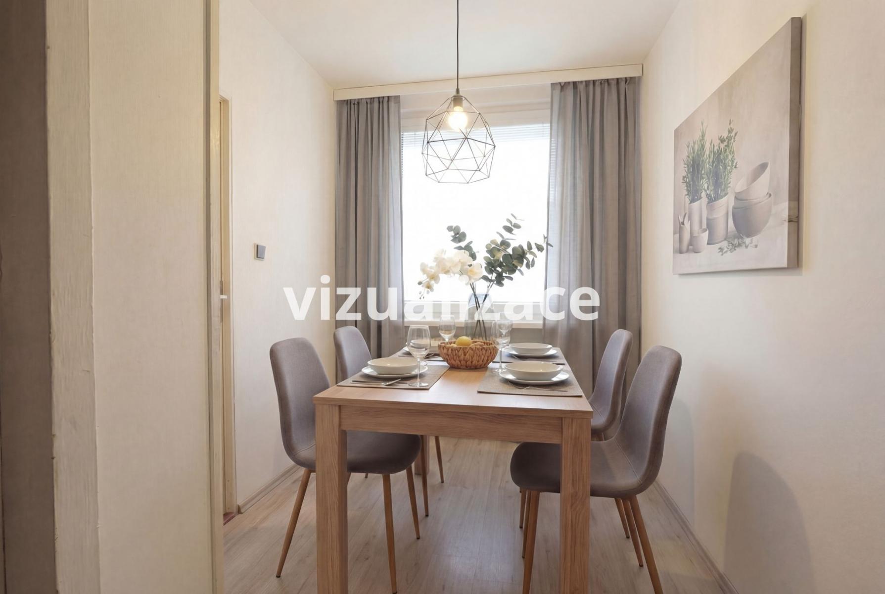 Dominantou bytu je světlý obývací pokoj, který tvoří přirozené centrum domácnosti a nabízí dostatek prostoru pro pohodlné posezení i rodinná setkání. Na obytnou část navazuje kuchyně s jídelnou, která vytváří příjemné místo pro společné stolování a každodenní rodinný život. Dispozice kuchyně zároveň umožňuje pohodlné uspořádání kuchyňské linky i dostatek prostoru pro jídelní stůl.