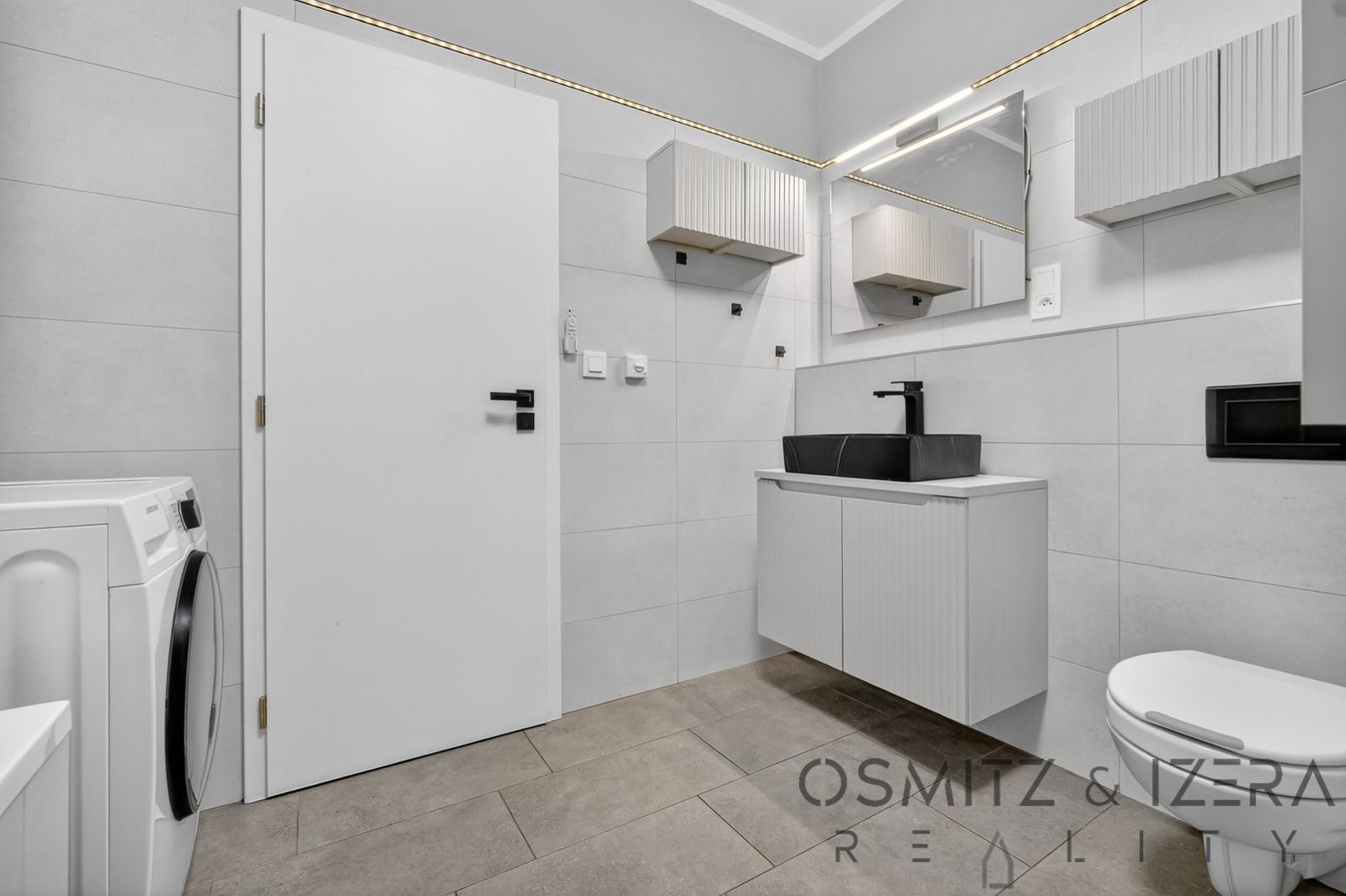 Prakticky řešený byt v novostavbě s velkou předzahrádkou/terasou. Dispozici lze snadno příčkou rozdělit na 2+kk. Plocha bytu 45 m je doplněna o velkou slunnou terasu 25 m jejíž součástí je velká hliníková pergola s elektrickým ovládáním zatahovací střechy a motorové předokenní žaluzie. Byt je kompletně vybaven. Hodnota nového vybavení bytu jako je vybavená kuchyňská linka, hliníková pergola, předokenní žaluzie atd. jsou v hodnotě cca 750.000 Kč. Jahodnice je velmi populární lokalita v rámci Prahy 9 Hostavice. Bydlení, které kombinuje komfort novostavby s nadstandardním venkovním prostorem. Byt je kompletně vybaven včetně všech spotřebičů a stačí se jen nastěhovat.