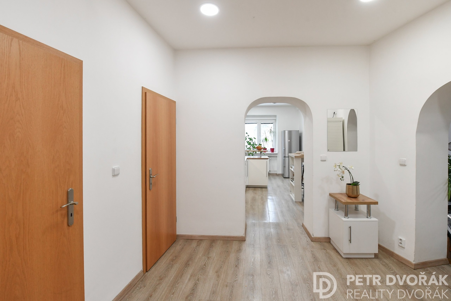 Prostorná vstupní předsíň s novou plovoucí podlahou nabízí dostatek úložného prostoru včetně praktické komory / šatny. Výjimečným bonusem je vlastní infrasauna – ideální pro regeneraci v soukromí domova. Samostatná kuchyň je vybavena moderními spotřebiči a poskytuje pohodlný prostor jak pro vaření, tak pro každodenní stolování. Světlý obývací pokoj s renovovanými parketami působí teplým a nadčasovým dojmem. Ložnice se dvěma okny nabízí klidné zázemí s výhledem do zeleně. Koupelna s vanou a pračkou je kompletně obložena novou dlažbou a obklady, toaleta je řešena samostatně. Třívrstvá komorová okna v celém bytě zajišťují vynikající tepelnou i hlukovou izolaci.