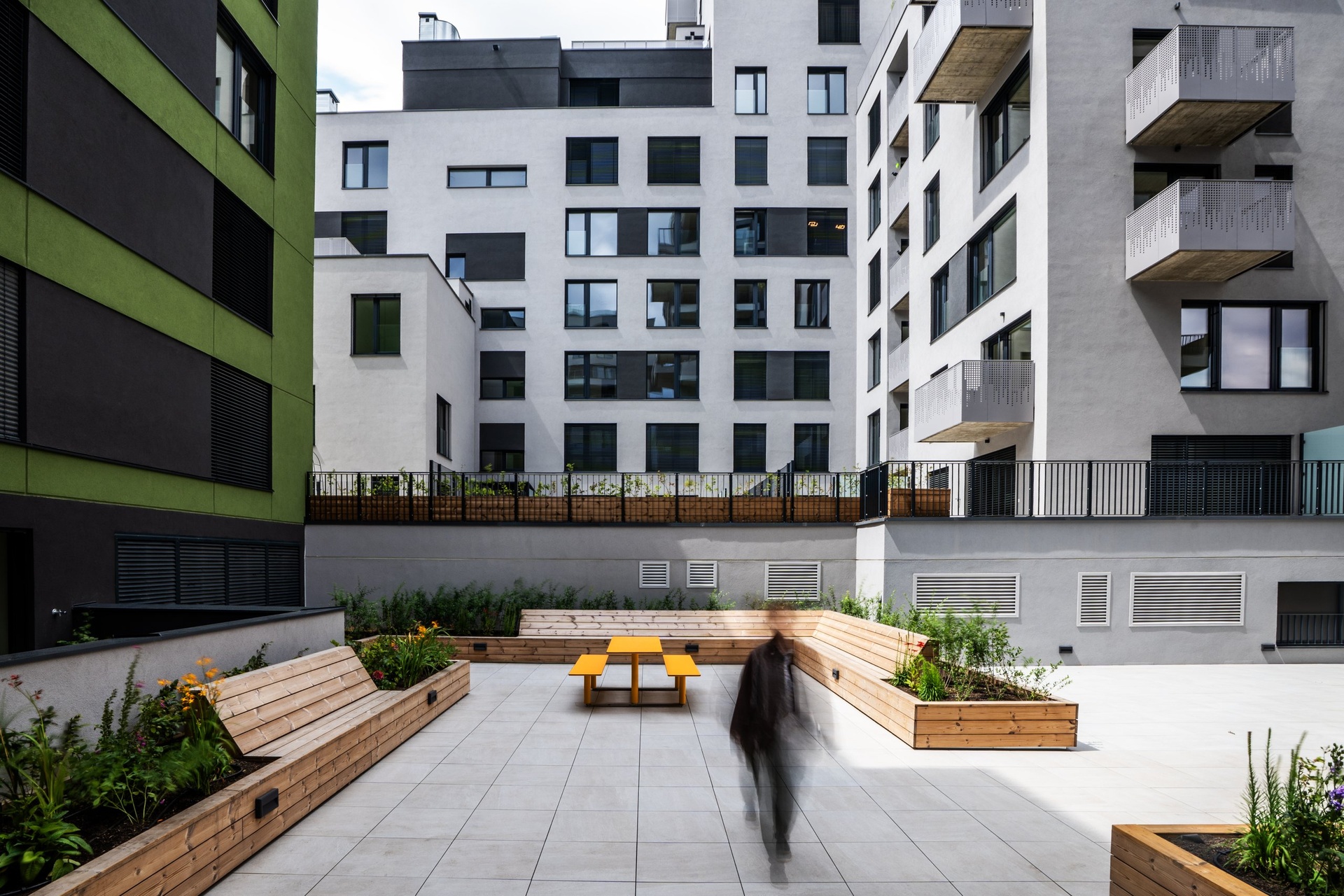 Východně orientovaný balkon je přístupný z obou obytných místností, zatímco jižně orientovaný balkon je přístupný z obývacího pokoje. Nabízejí výjimečný venkovní prostor pro relaxační část, odpočinek, posezení i městské zahradničení.