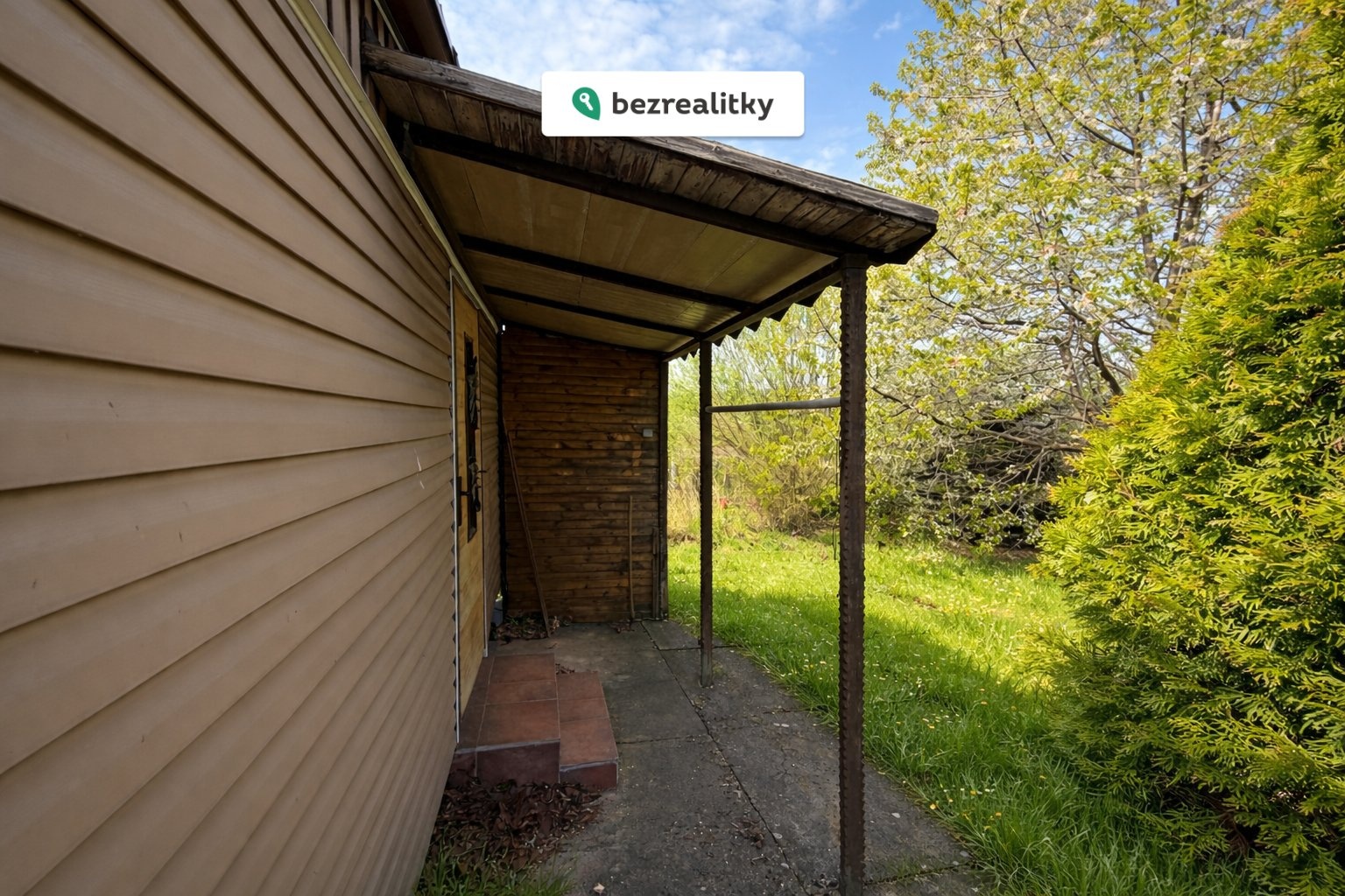 Stavba je umístěna na pevné podezdívce a je napojena na elektřinu i užitkovou vodu, která slouží zejména k zalévání zahrady (v zimním období se přívod vody uzavírá). Pozemek je oplocený a nabízí příjemné soukromí, prostor pro pěstování vlastní zeleniny i odpočinek mezi vzrostlými ovocnými stromy.