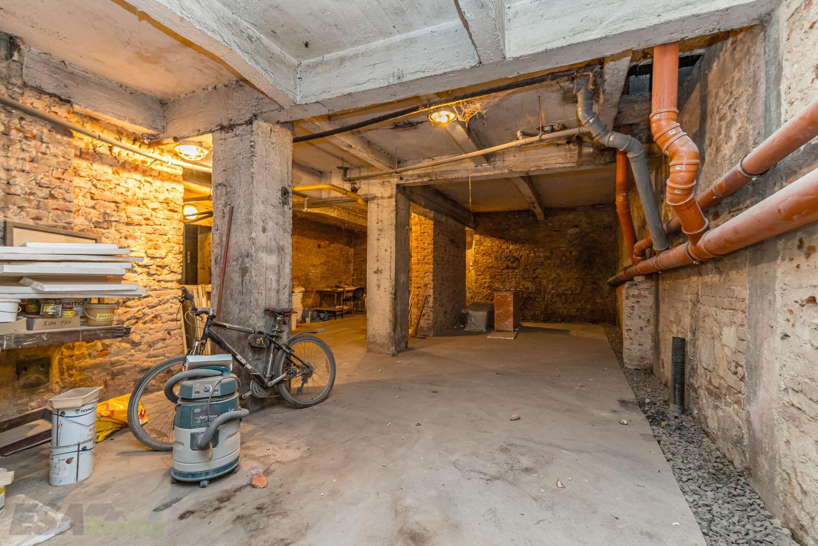 • suterén 601 m² s potenciálem pro vybudování 12–15 parkovacích míst a sklepních kójí