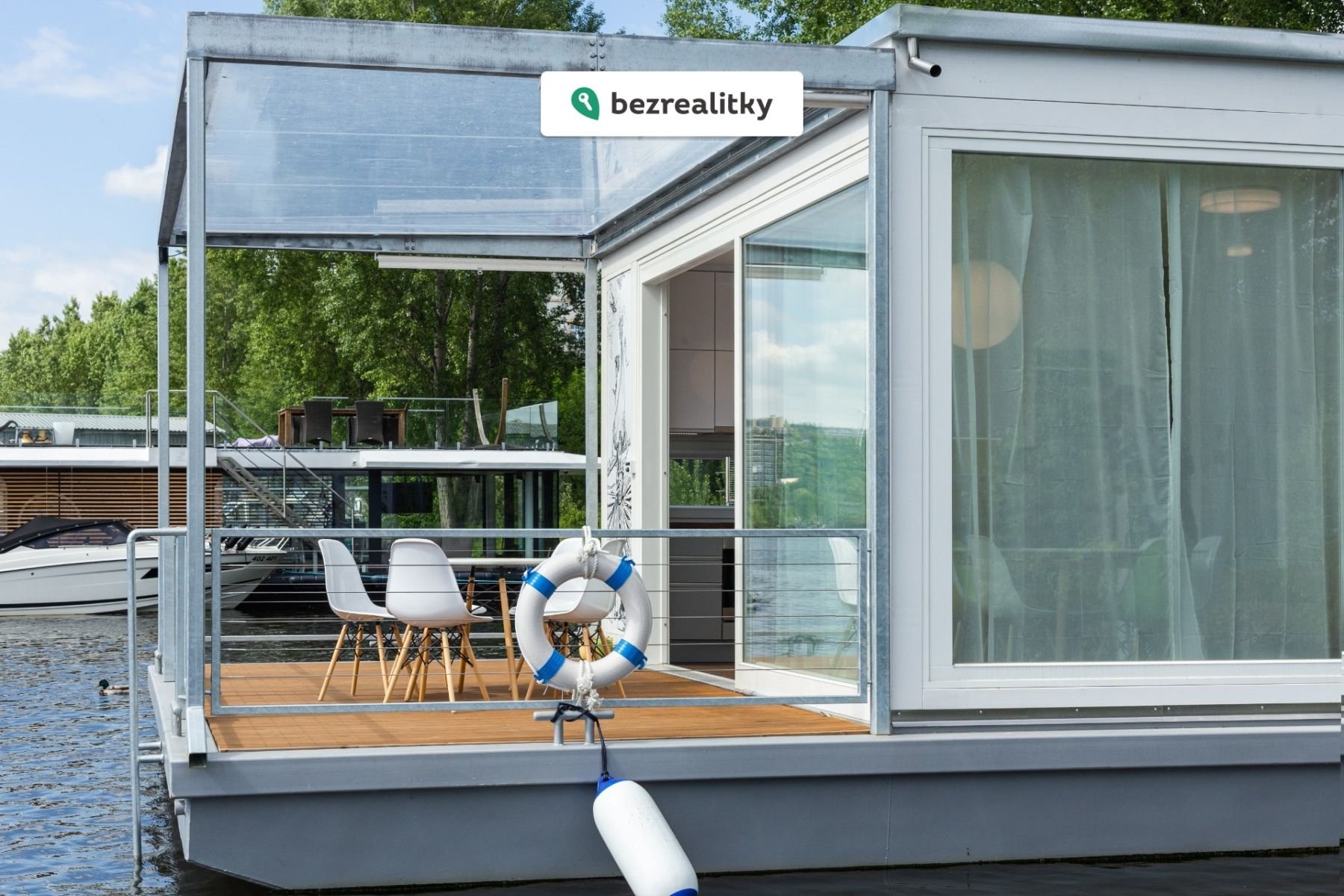 Jednopodlažní plovoucí zařízení se nachází na boardu o rozloze 70 m² (cca12x5,6m). Čistý obytný prostor má cca 42m2. Předním benefitem je propojení s přírodou, obrovská terasa je krytá a nabízí přímý kontakt s okolní vodní hladinou řeky Vltavy ( se schůdky a brankou do vody). Vyniká navíc možností parkování i pro větší počet vozidel přímo před objektem na náplavce, (za soukromou závorkou přístavu), případně lodí, což je velkou výhodou, pokud máte časté návštěvy, případně jako bezplatné parkování v Praze. V blízkosti je kulturní centrum DOX, La fabrika, Veletržní palác, Letná, park Stromovka atd…