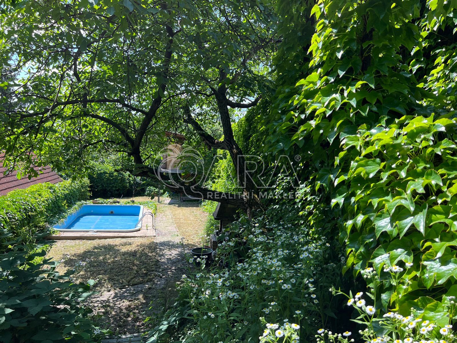 Nesmím opomenout zahradu, která je umístěna pod domem přes cestu o výměře 197m2, kde naleznete klid, bazén o rozměrech 6x3 a zahradní domek.