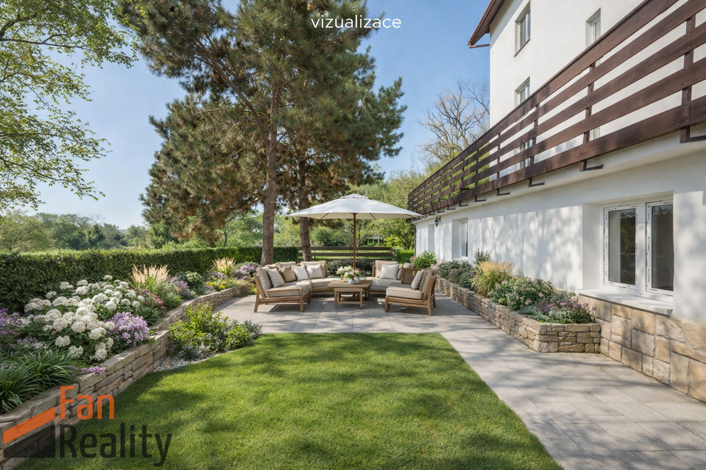 Velkou předností této nemovitosti je soukromá zahrada ve výhradním užívání o rozloze 120 m², která nabízí ideální prostor pro relaxaci, posezení s přáteli nebo letní grilování. Z bytu i zahrady je příjemný výhled na Kyjský rybník, což dodává místu jedinečnou atmosféru klidu a soukromí.