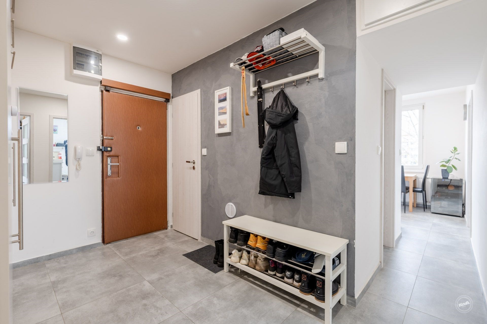 Byt nabízí praktické a funkční uspořádání s dostatkem úložných prostor.