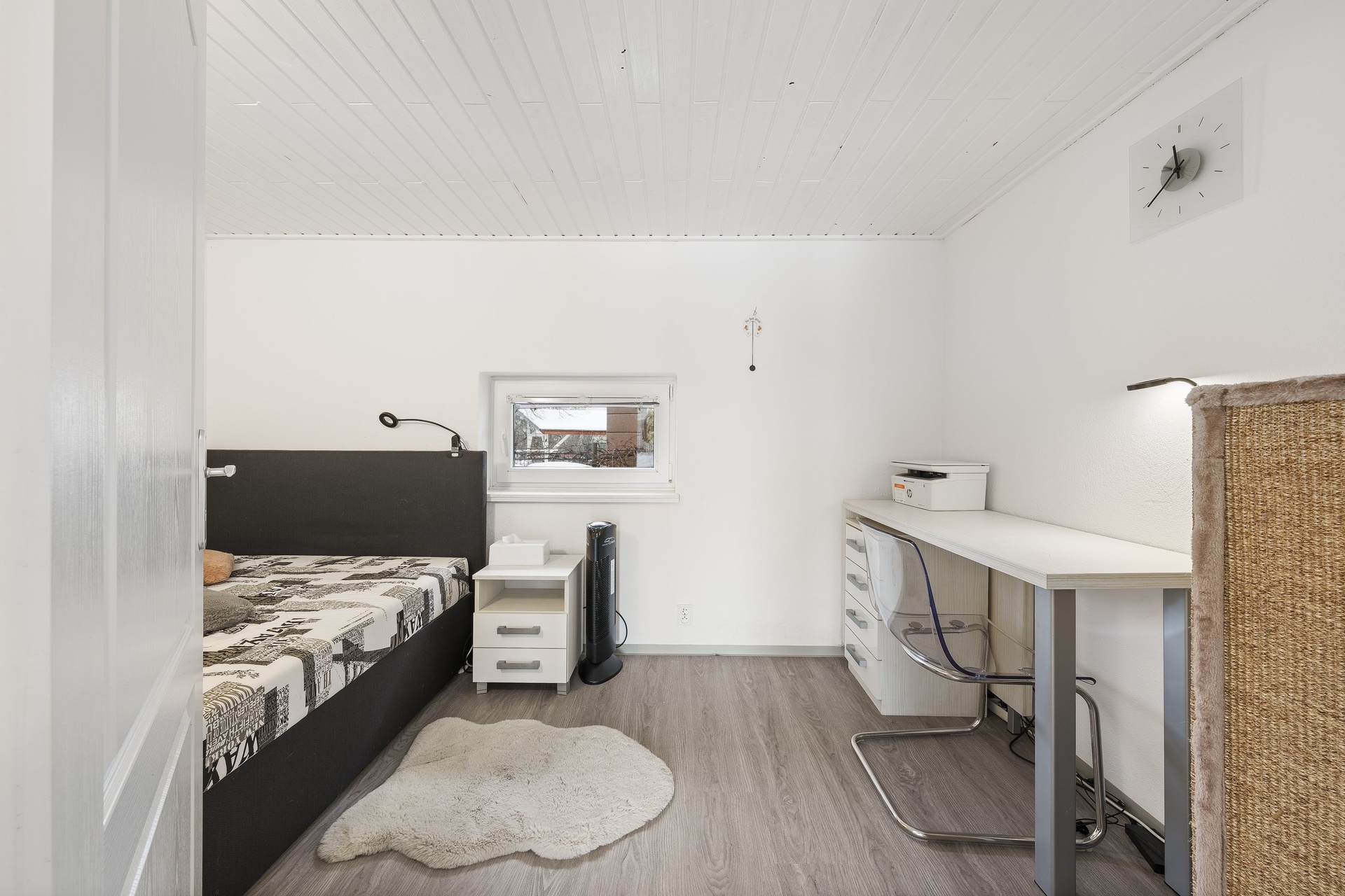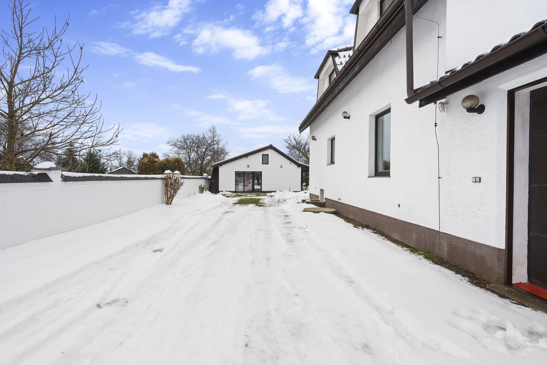 Součástí pozemku je také samostatný menší domek o dispozici 2+kk s vlastní koupelnou se sprchovým koutem. Domek je zateplen a vytápěn tepelným čerpadlem. Tento objekt je ideální pro vícegenerační bydlení, hosty, kancelář, ateliér nebo jako investiční jednotka k pronájmu.