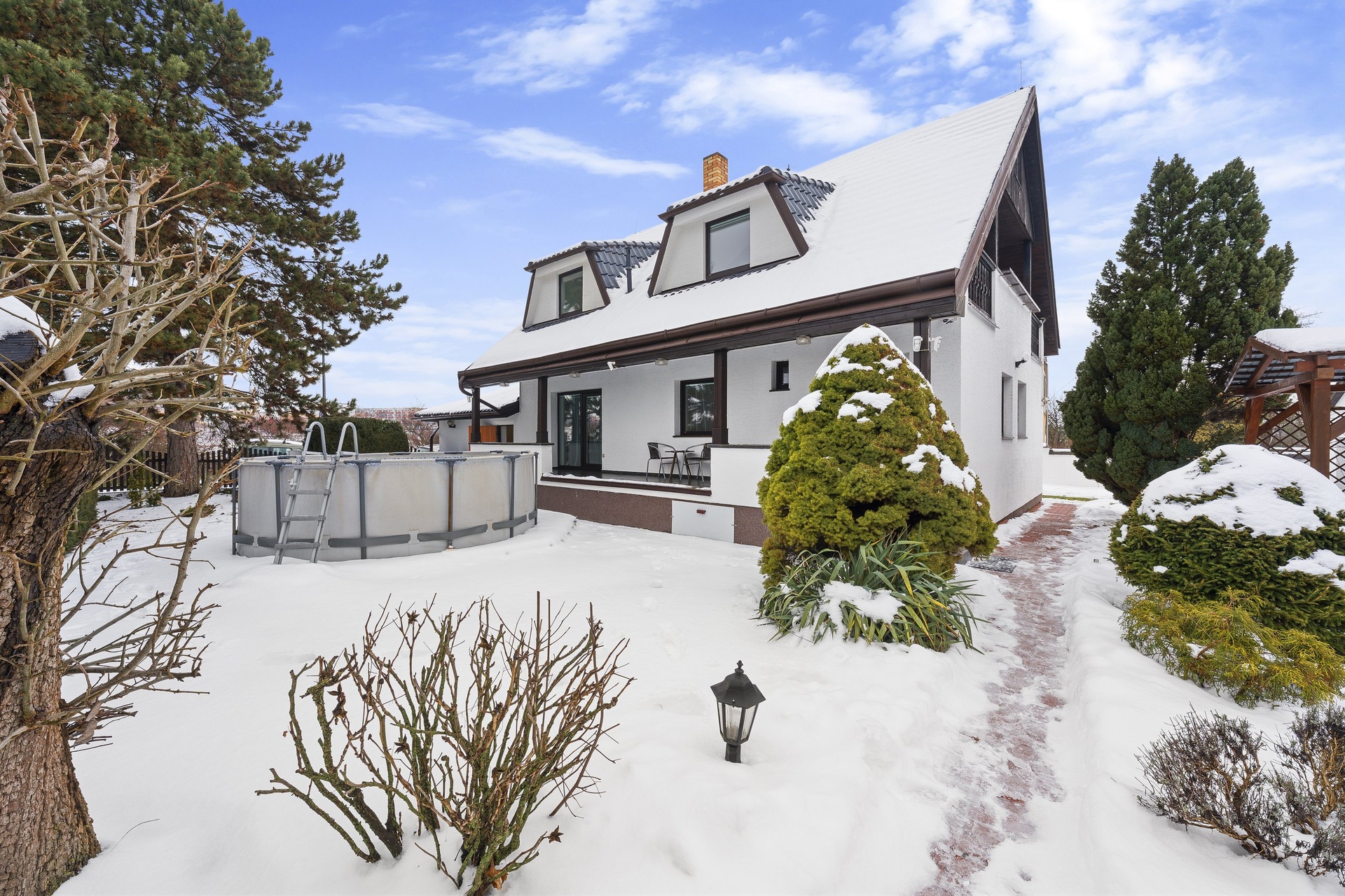 Nemovitost je obklopena udržovanou zahradou, která poskytuje příjemné soukromí a prostor pro relaxaci i rodinné aktivity.
