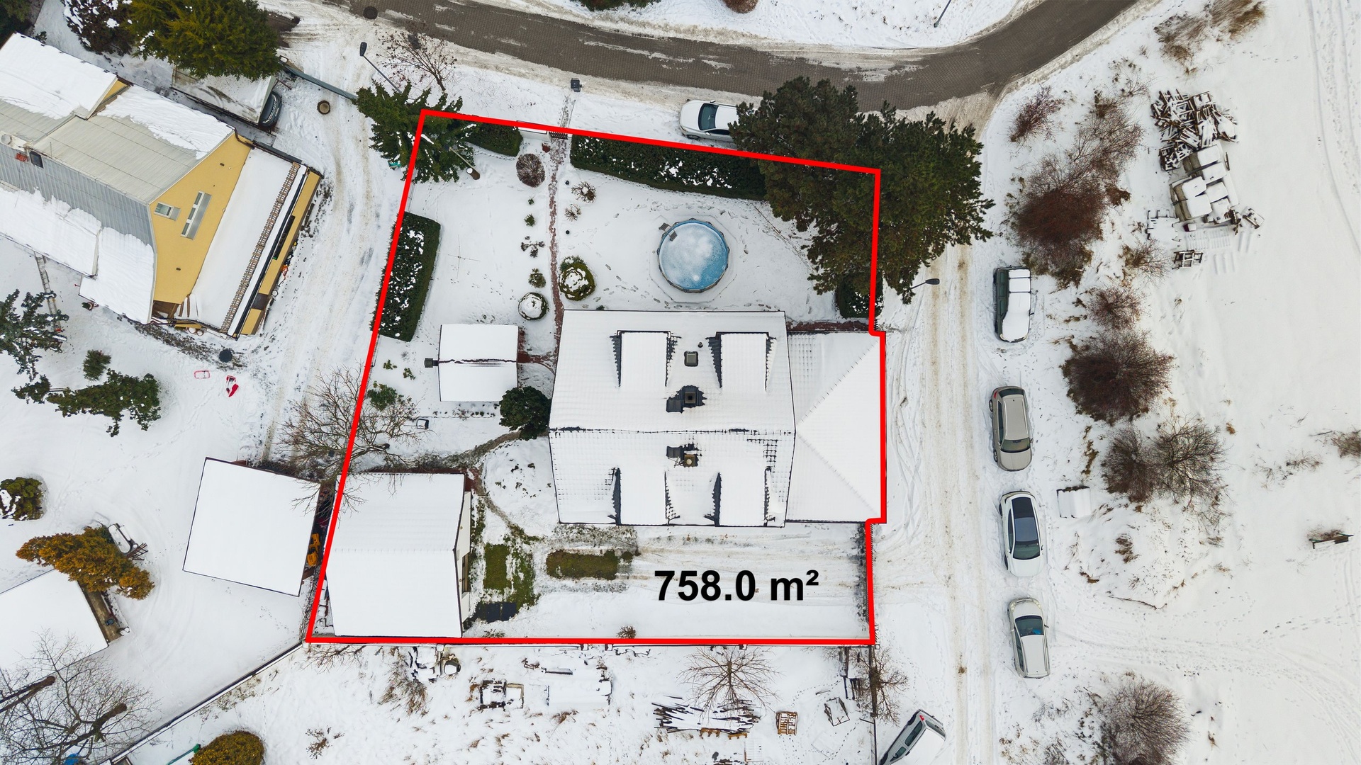 rohový pozemek ( o celkové výměře 758 m2, zastavěná plocha 209 m2) zajišťující soukromí