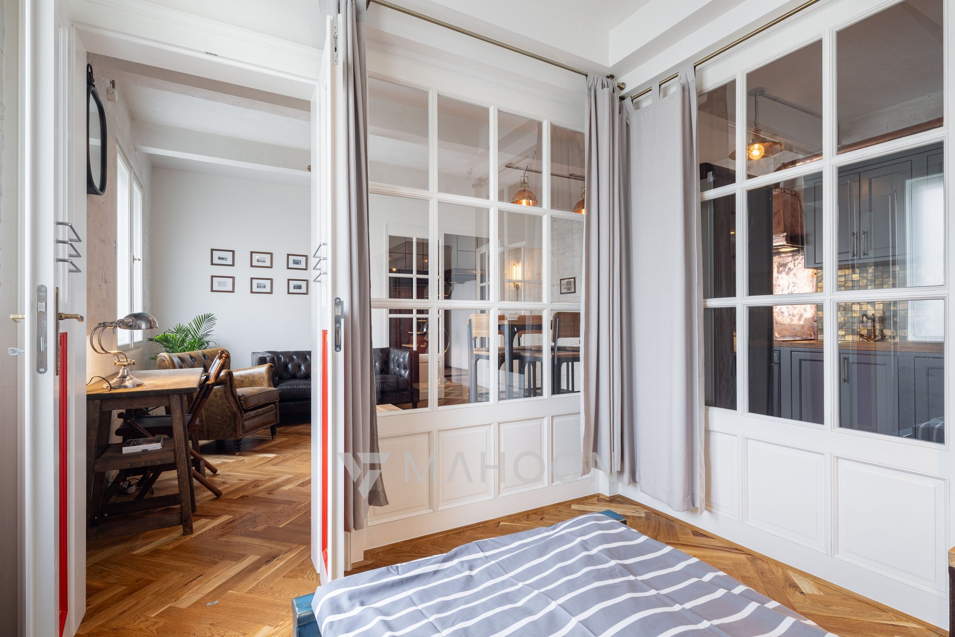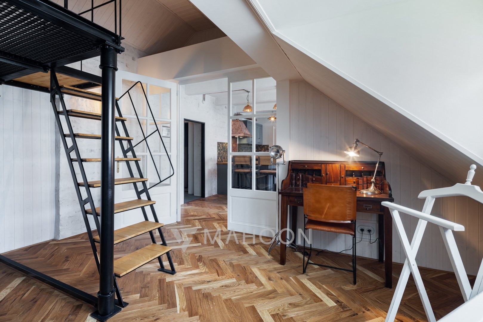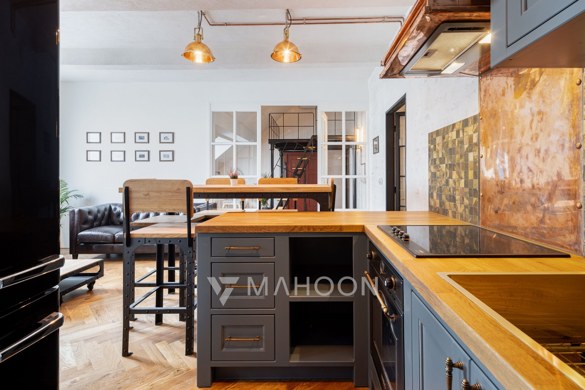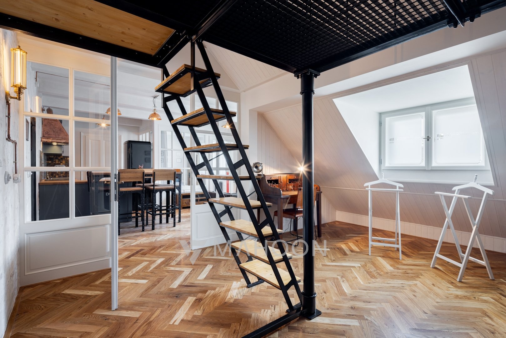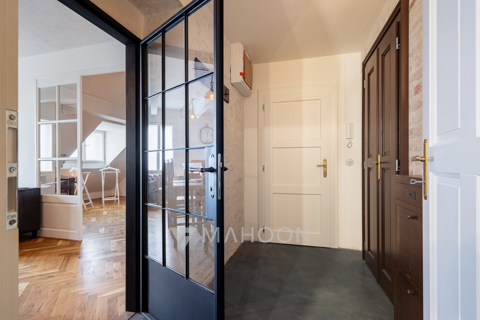 Realitní kancelář MAHOON představuje mimořádnou příležitost s ambicí přetrvat generace. Je to prvotřídně zrekonstruovaná bytová jednotka o dispozici 3+kk (66 m² vč. spacího patra), situovaná u hranice pražských Vinohrad a Strašnic.