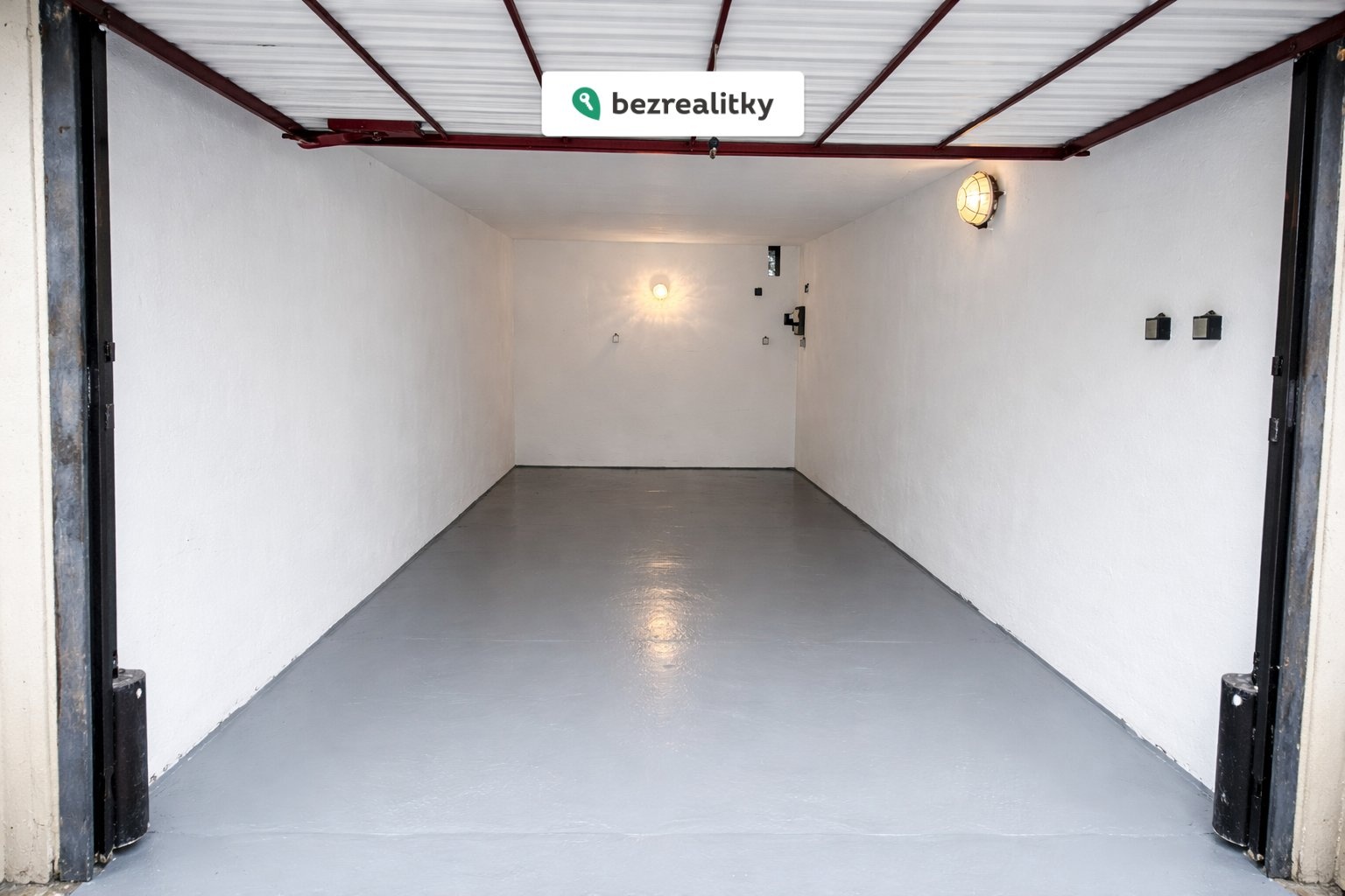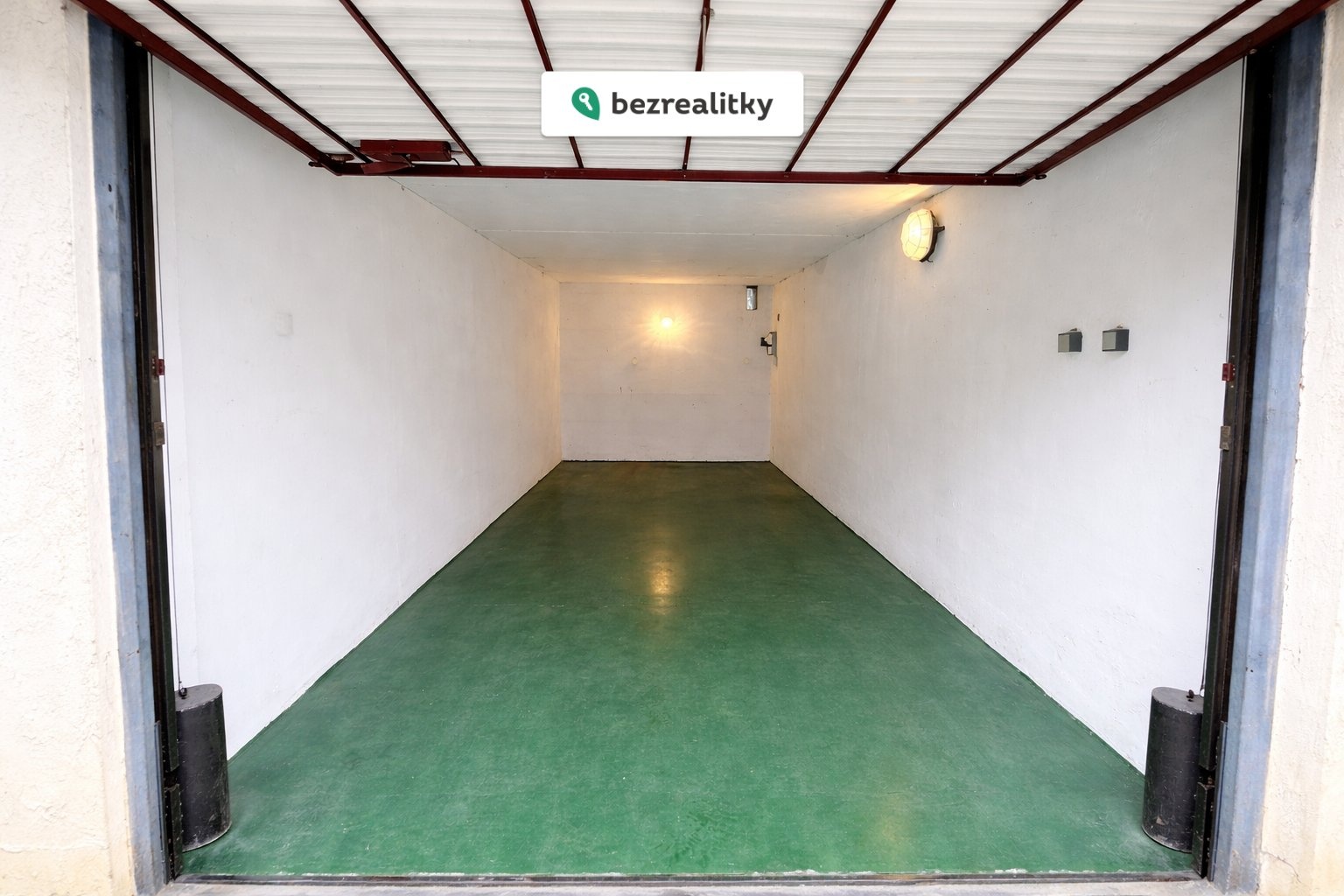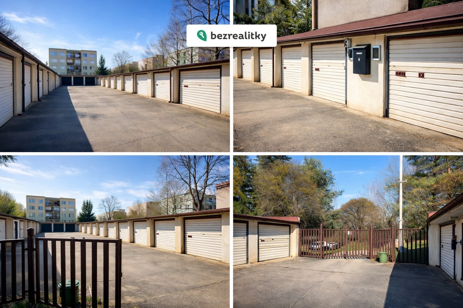 Příjezd do garáže je po zpevněné betonové silnici, dále i společný prostor před garážemi je z betonových panelů a dostatečně prostorný pro pohodlný vjezd do garáže. Garáž má rozměr 2,8 x 6,3 m2, tj. 17,64 m2, je vybavena výklopnými vjezdovými vraty, je do ní zavedena elektřina (samostatný