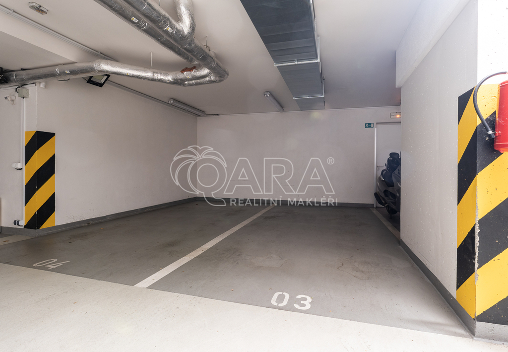 Velkou výhodou je vlastní garáž s šesti plnohodnotnými parkovacími stáními.