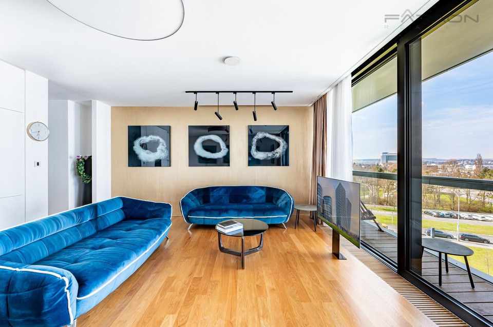 Prodej kompletně vybaveného bytu 3+kk (137m2 ) - V Tower, 2 parkovací místa, sklep, Praha 4