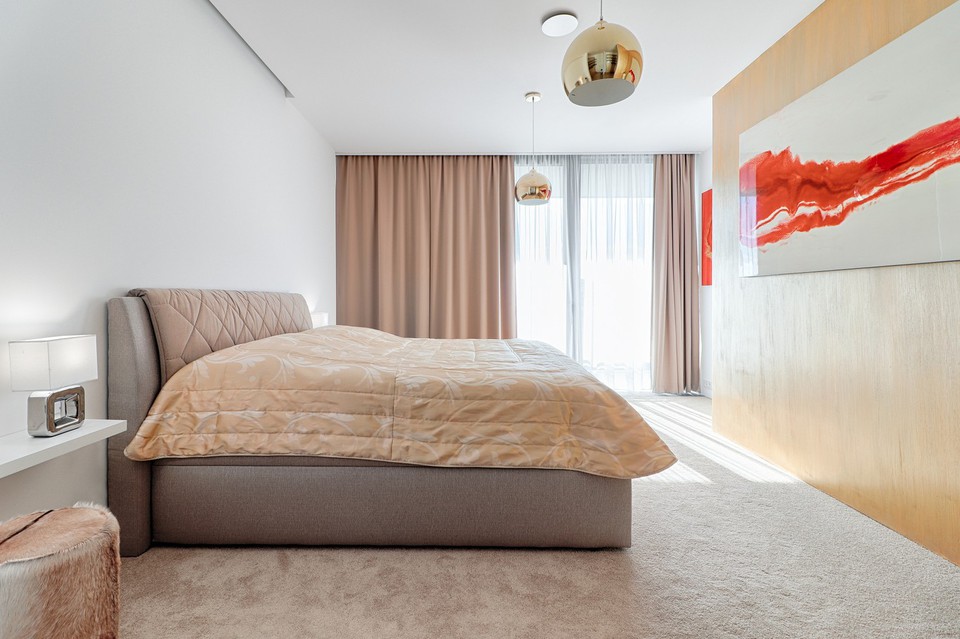 Nadstandardní vybavení zahrnuje luxusní kuchyňskou linku Hanák v bílém lesklém provedení se všemi spotřebiči SIEMENS, myčku Miele, vestavěné šatní skříně na míru, luxusní dubové podlahy v obývacím pokoji a kuchyni, koberce v ložnicích, carrarský mramor v koupelnách a zařizovací předměty Villeroy & Boch, osvětlení po celém bytě a exteriérové žaluzie na dálkové ovládání, pračku, sušičku a klimatizaci v celém bytě.