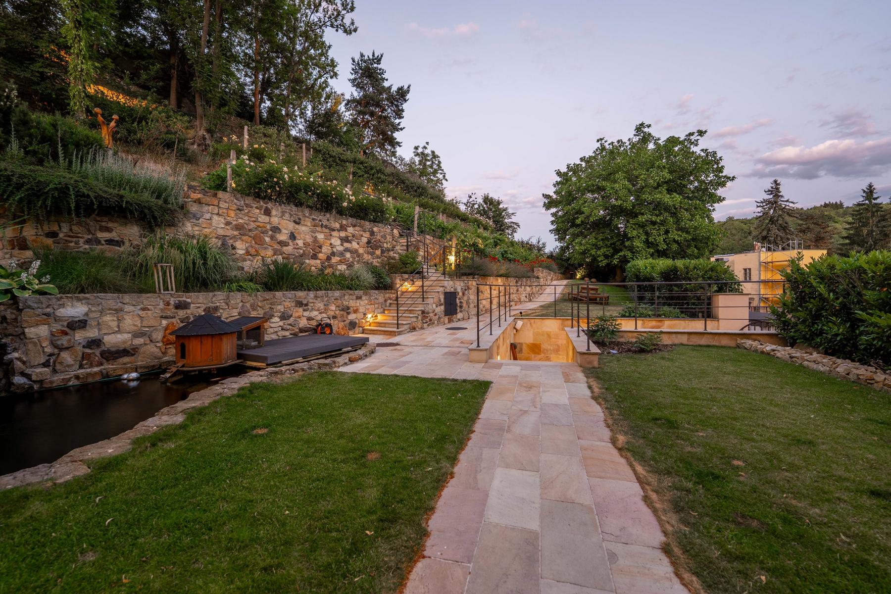 K venkovnímu odpočinku je určeno zákoutí na zahradě a několik teras.