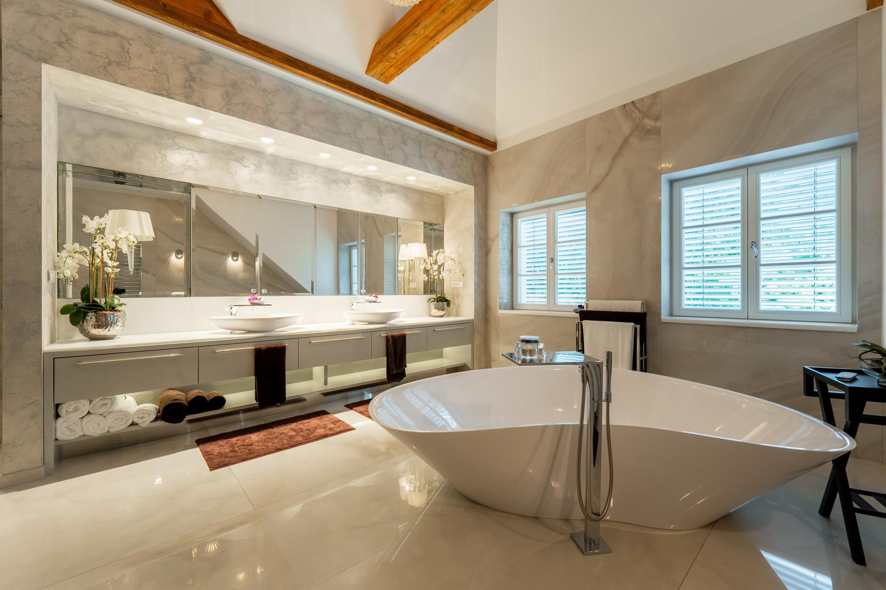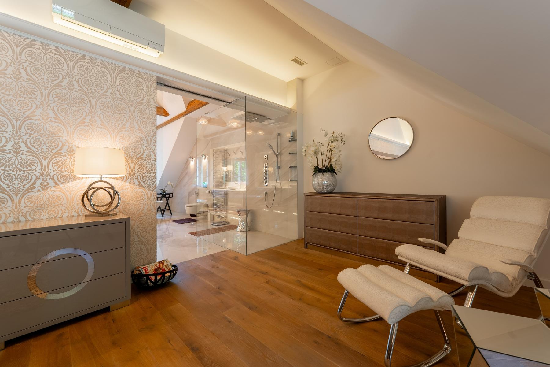 Ve všech prostorách domu je podlahové vytápění napojené na dva plynové kotle. O příjemné klima v interiéru se stará výkonná vzduchotechnika a klimatizace, což zaručuje nadstandardní komfort bydlení v jakémkoliv počasí.
