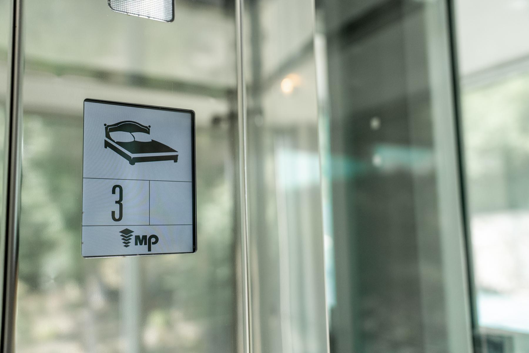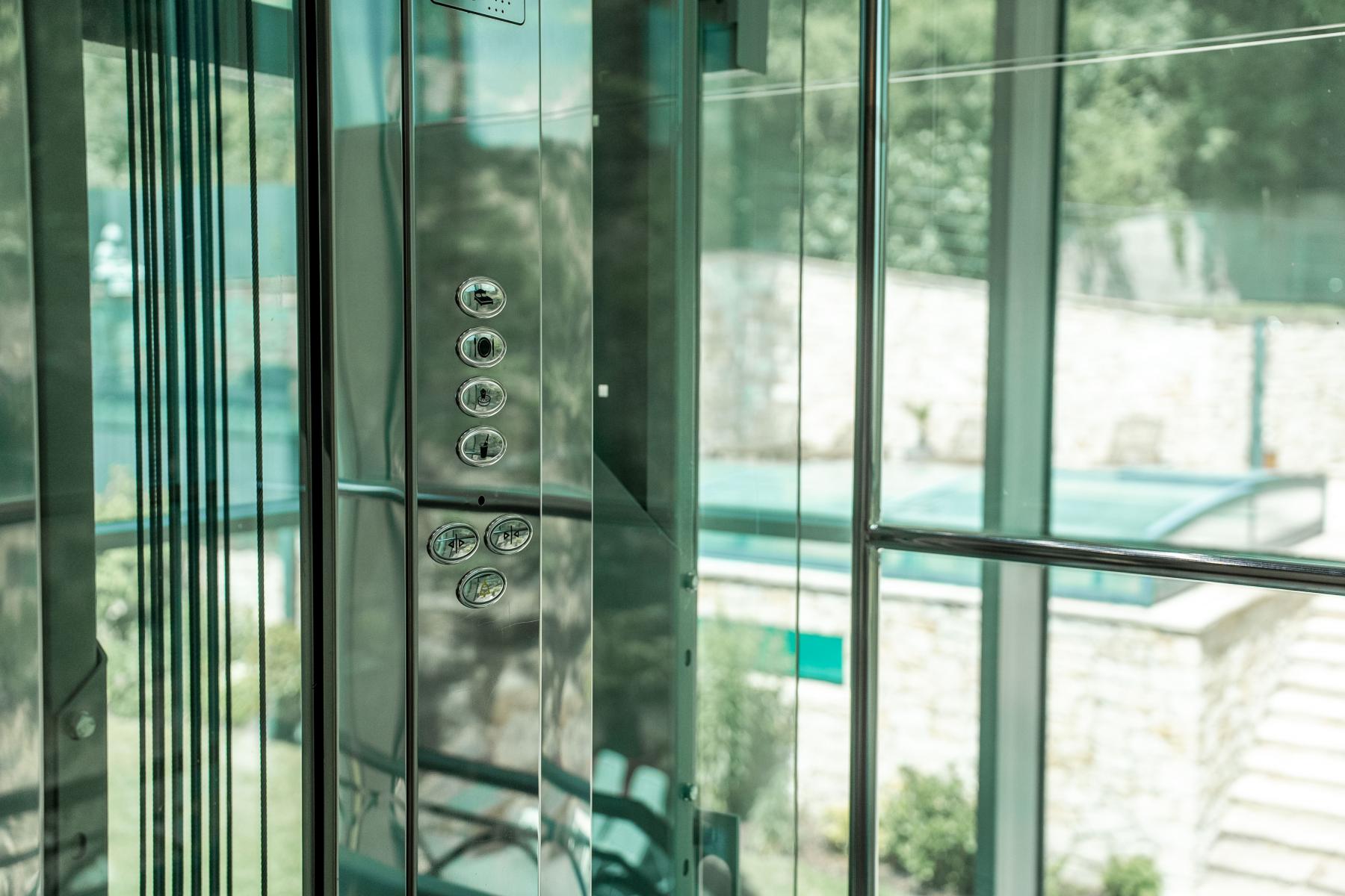 Prosklený výtah.