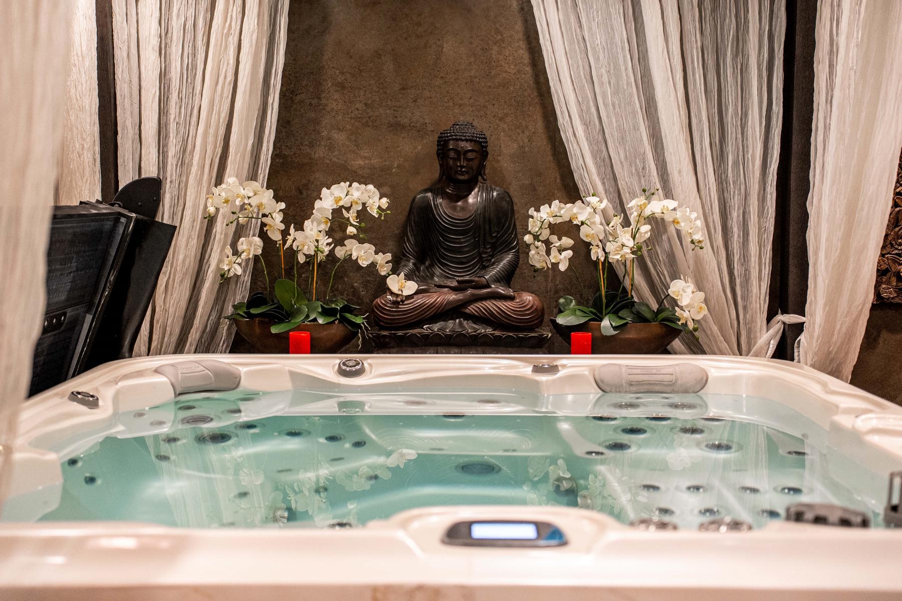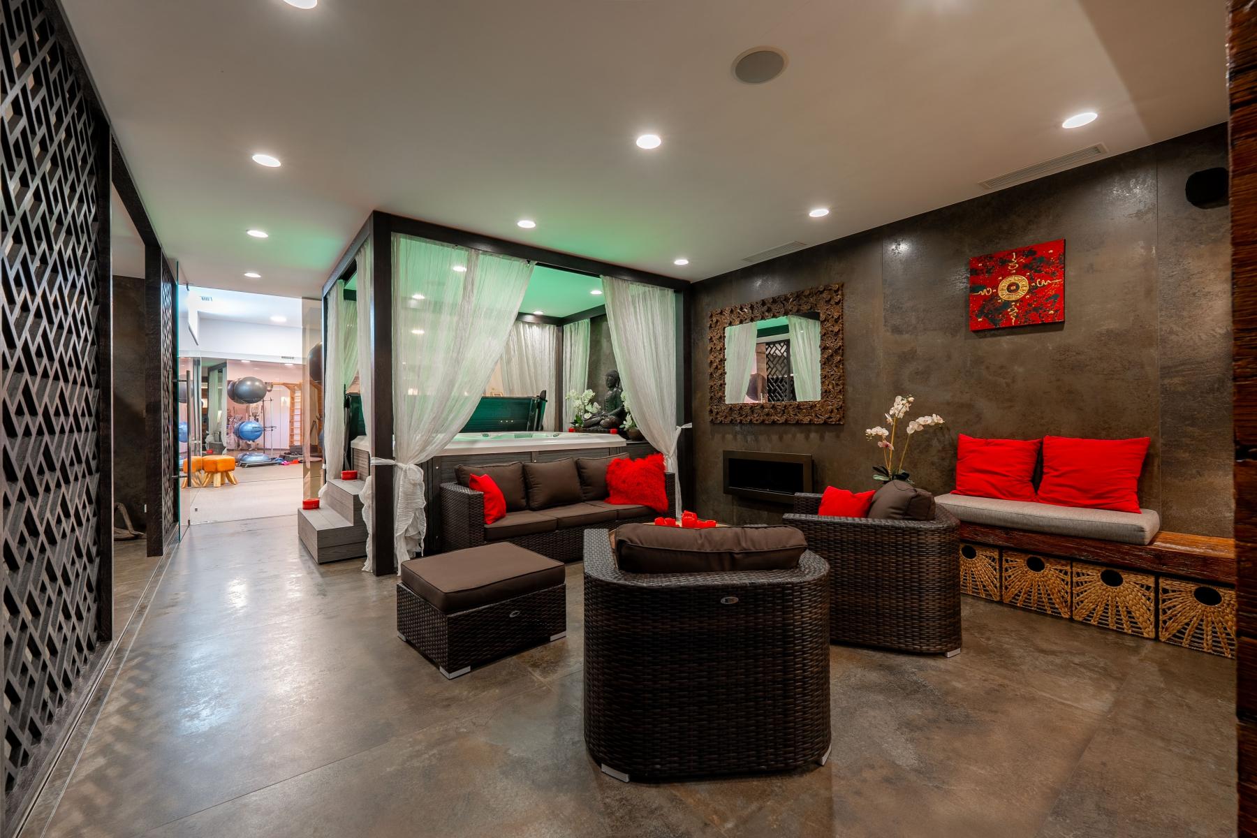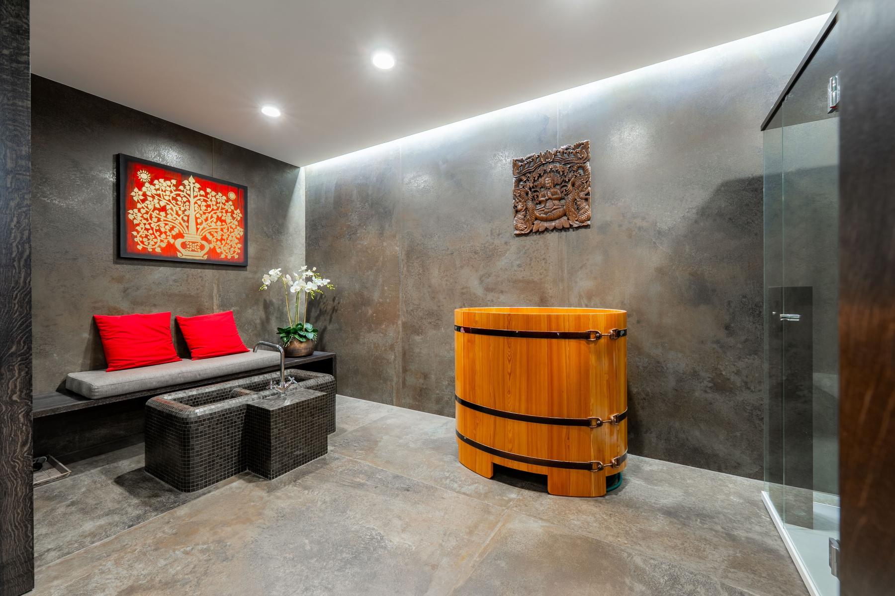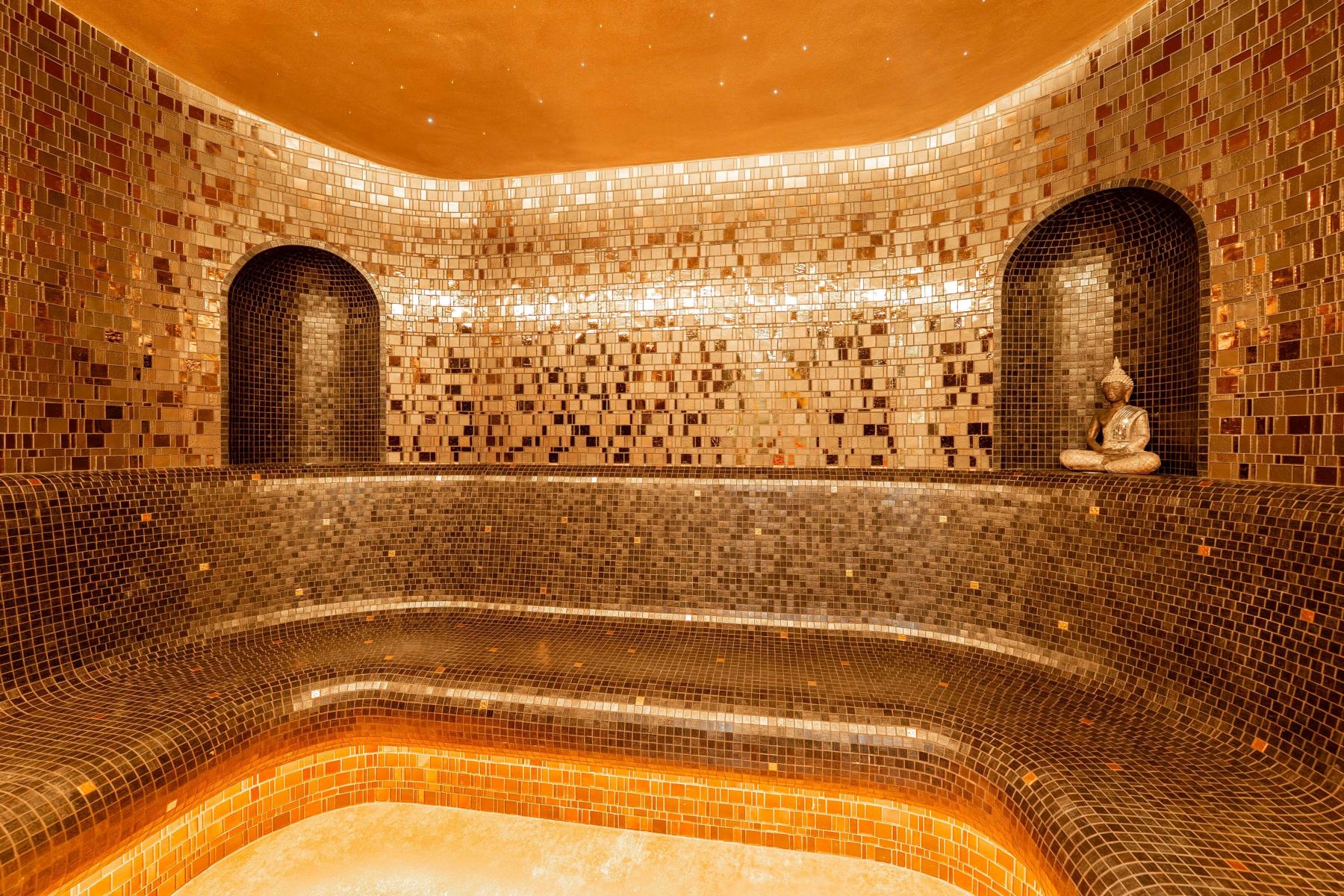 Wellness zóna s Whirlpool vanou, knippe, parní sauna, infra sauna a tělocvična.