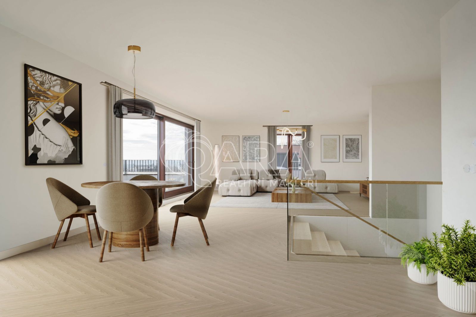 Představte si místo, kde každý den začíná a končí s dechberoucím výhledem, kde soukromí a půvab tvoří dokonalou symfonii s přírodou. Vítám vás v exkluzivním mezonetovém bytě o výměře 156,5m2, kde se architektonická bravura setkává s krásou přírodní památky parku Vidoule. Tento skvost je výsledkem mistrovské práce mar.s. architects, kteří stojí za projekty, které oslovují svět. S dřevem, kamenem a atypickými fasádami tvoří tento byt ve skutečnosti malý rodinný dům, umělecké dílo, které je zároveň vaším domovem.