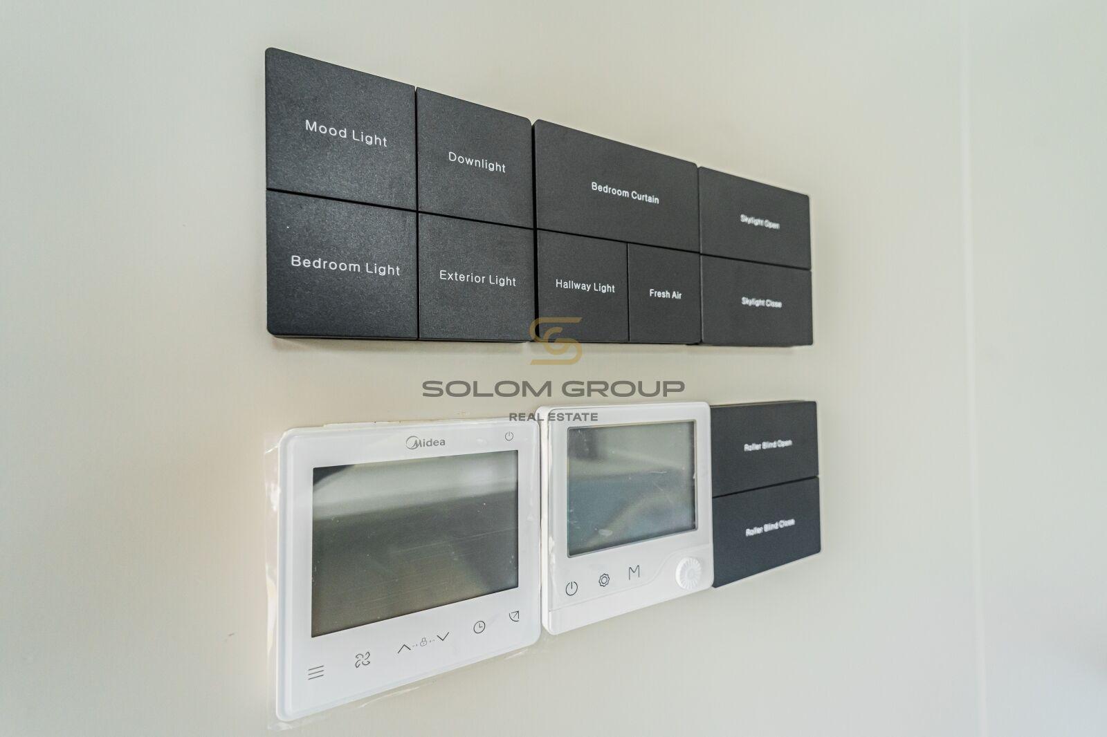 Oba mobilheimy mají panoramatickou střechu (pro maximální světlo a „wow efekt“), podlahové vytápění, klimatizaci, elektrické závěsy a moderní ovládání prvků domu. Vstup je řešený otevíráním zámku na kód nebo kartu. U jednoho domu je navíc u vybraného okna místo závěsu instalované projekční plátno – ideální na večerní promítání.