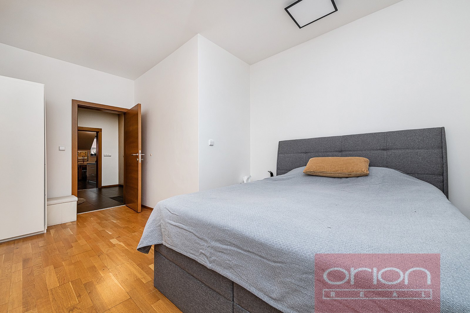 Vybavení a technické detaily : dDřevěné podlahy v obytných místnostech, dlažba v ostatních, klimatizace v ložnicích, plynový kotel Vaillant. Společný sklep v domě – ideální např. pro úschovu kol.