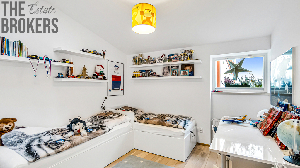 Byt se nachází ve druhém a třetím nadzemním podlaží, disponuje podlahovou plochou 79,38 m² plus balkon 8 m2, což nabízí příjemné a komfortní bydlení a poskytuje možnost relaxace a trávení volného času venku. Oceníte také možnost dokoupení sklepa a garážového parkovacího stání. Standardní výbavou všech jednotek jsou vytápěné podlahy, elektrické před-okenní žaluzie, možnost využití venkovní elektro nabíjecí stanice pro automobily a společná komunitní zahrada. Možnost využití instalace smart ovládání bytu na dálku v rámci klientských změn.
