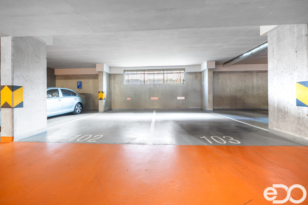 - Bezkonkurenční parkování: DVĚ rozšířená garážová stání v suterénu domu, která přímo sousedí s vchodem do domu a sklepem – konec hledání parkovacího místa!