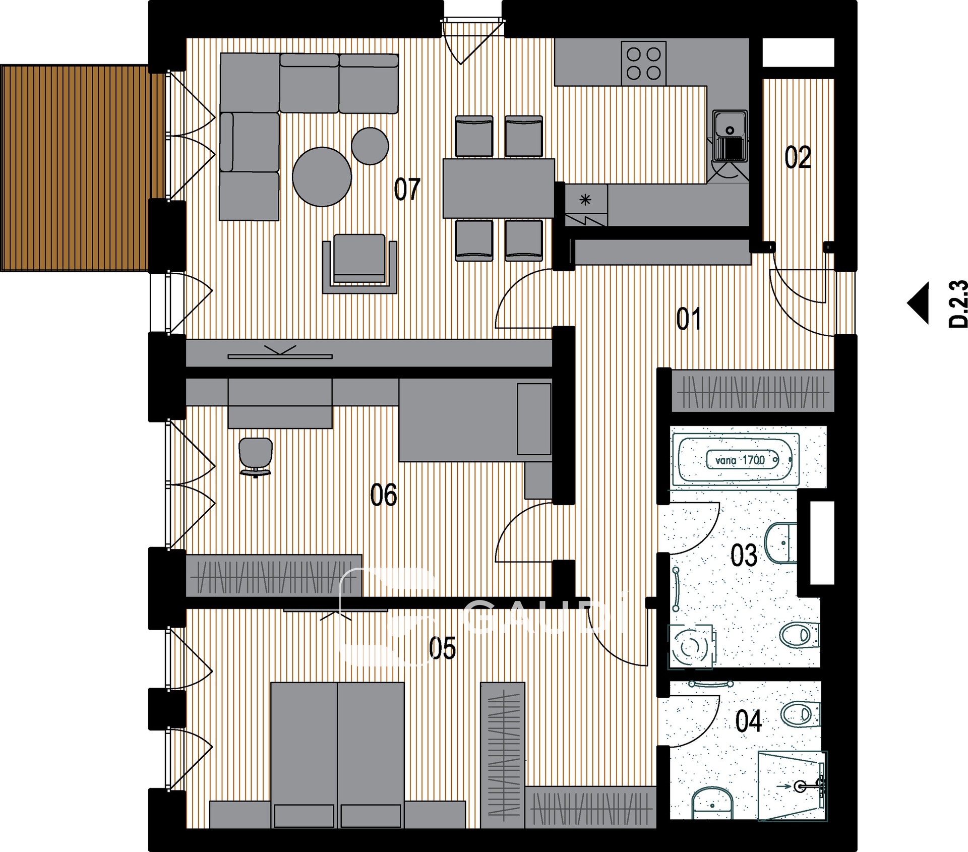 Celý byt i projekt jsou provedeny ve vysokém standardu. Mezi špičkové vybavení patří: