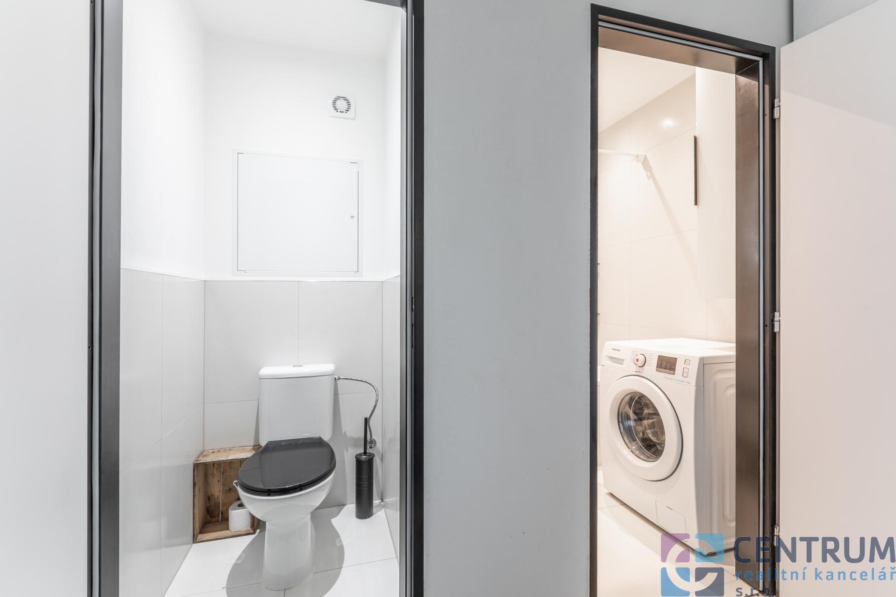 Samostatné WC a koupelna s vanou.