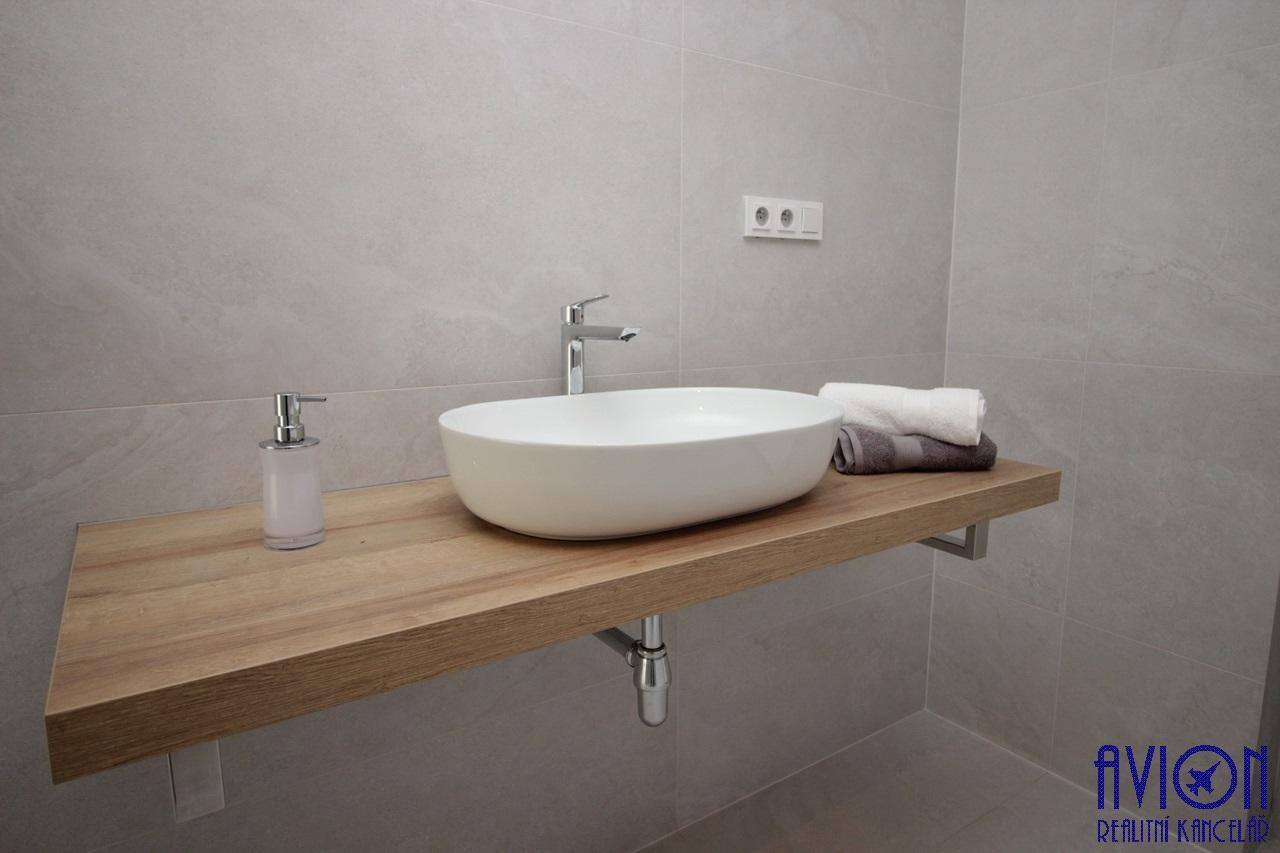 Ve všech pokojích bytu a na chodbách jsou vinylové podlahy, v obou koupelnách je dlažba. Zakázkové interiérové bezfalcové dveře s prosklením podtrhují moderní vzhled bytu. Nové rozvody elektřiny, vody a odpadů. Krásný slunný obývací pokoj 33 m2 se vstupem na prostornou terasu o výměře 31 m2 je na jihozápad, orientace ostatních pokojů o výměrách 10 až 17 m2 je na západ a severovýchod. Byt disponuje dvěma koupelnami, ve velké koupelně o výměře 7 m2 se nachází vana, sprchový kout a dvojumyvadlo, v další koupelně je sprchový kout a toaleta, další toaleta je samostatná.