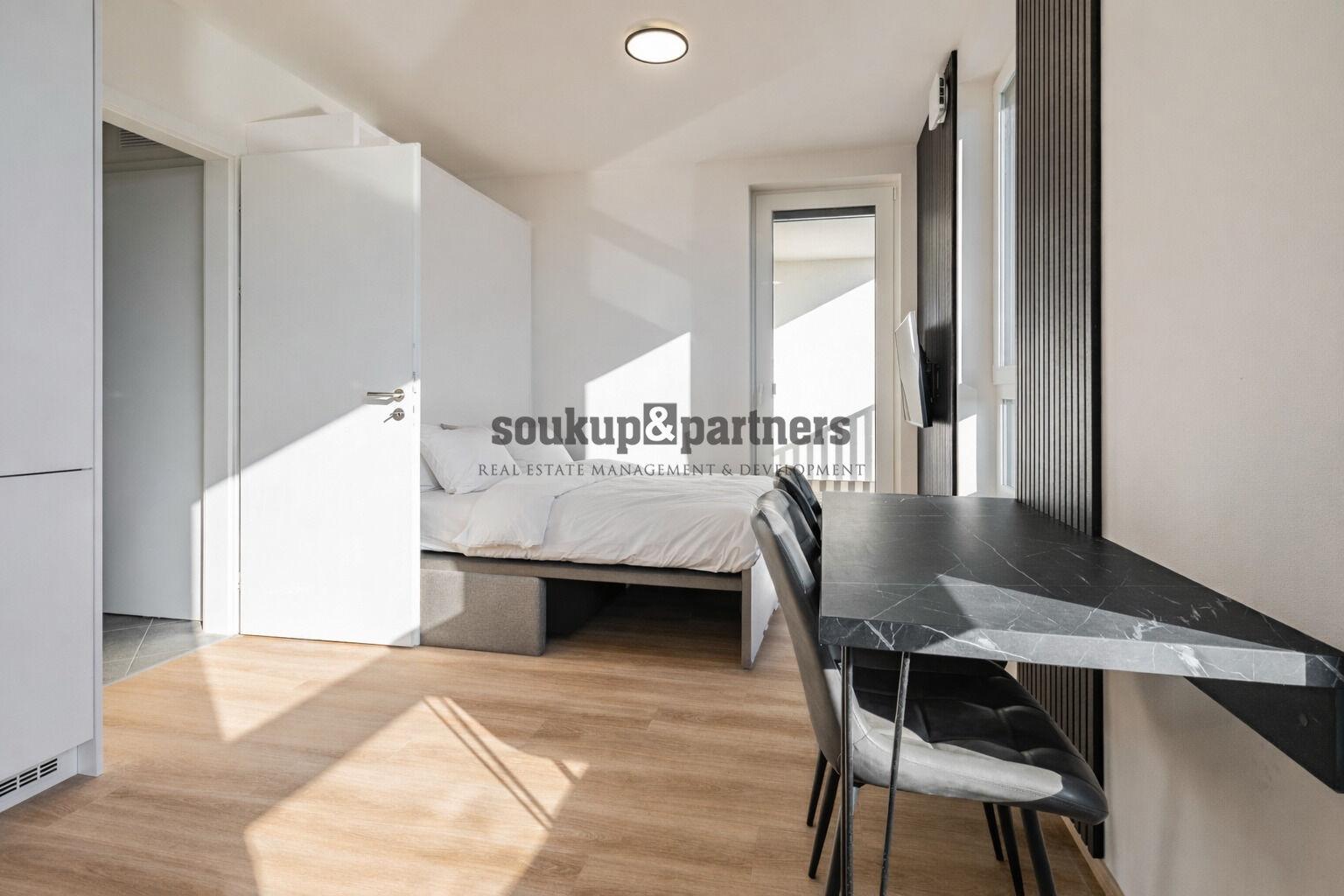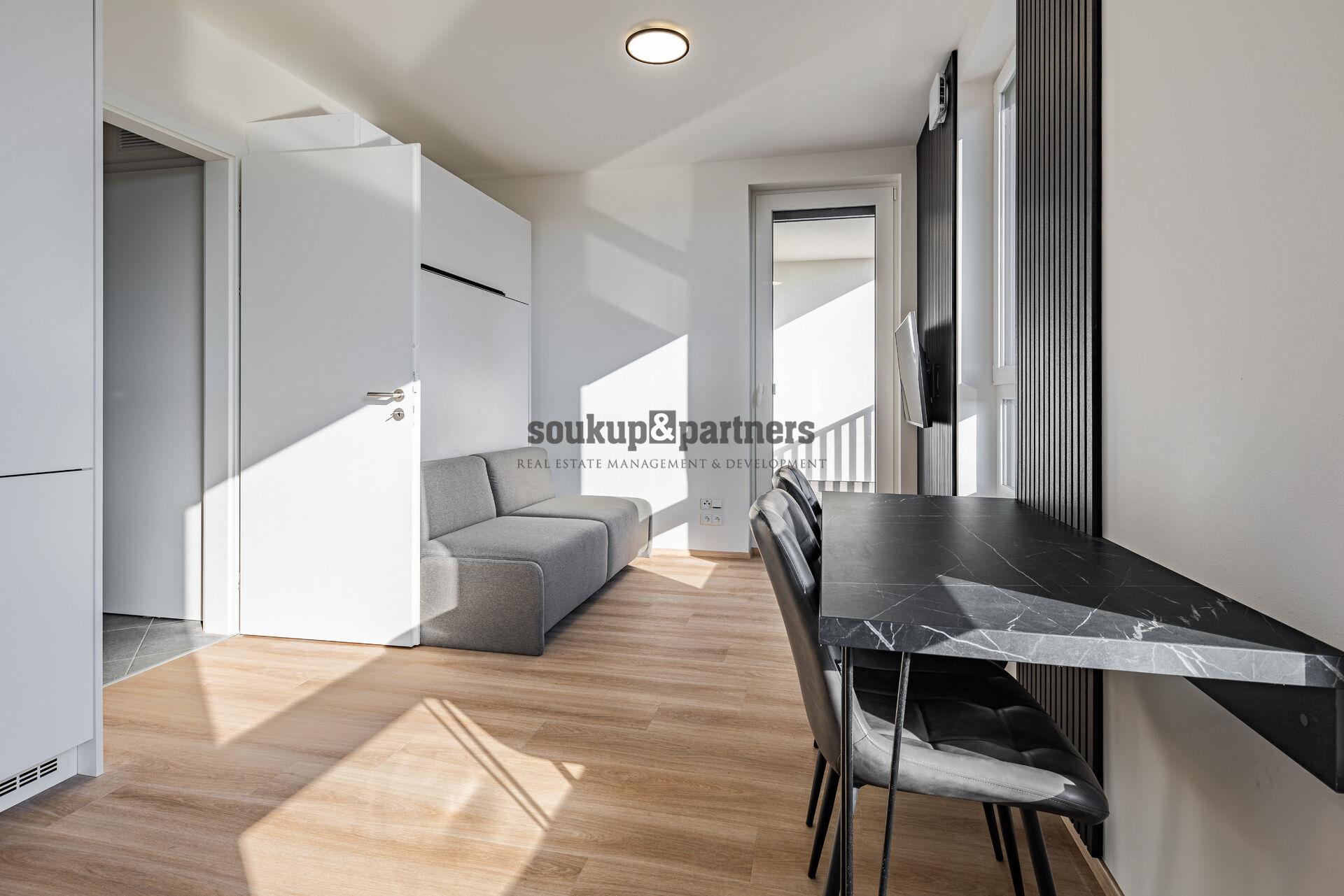 Nabízíme nový kompletně zařízený družstevní byt o dispozici 1+kk a podlahové ploše 26,1 m² + 4,3 m² lodžie , umístěný ve 2. NP moderní rezidence. K bytu náleží lodžie orientovaná na jih, dále parkovací stání v 1. PP a sklep o velikosti 5,2 m² umístěný přímo u parkovacího stání – velmi praktické řešení pro každodenní komfort.
