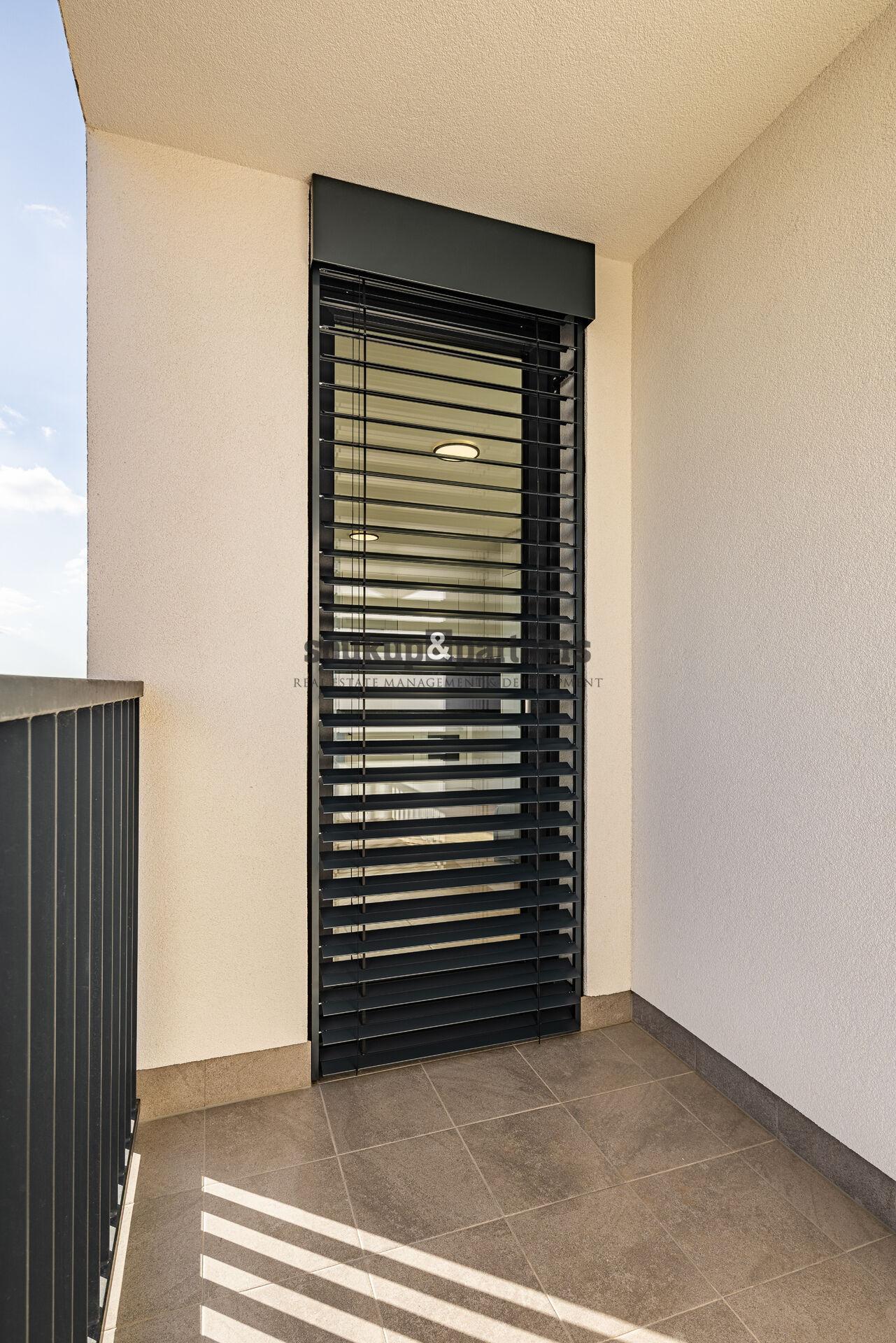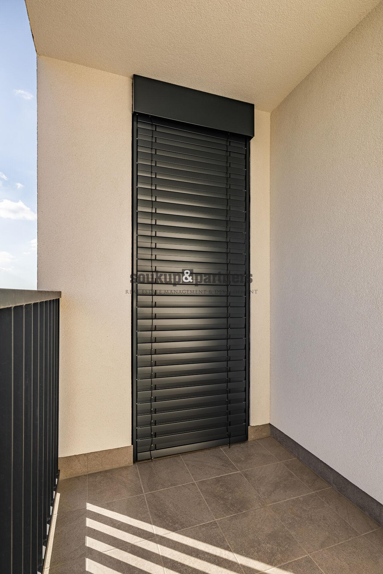 Na všech oknech jsou instalovány předokenní žaluzie s dálkovým ovládáním, které zajišťují tepelný komfort i soukromí.